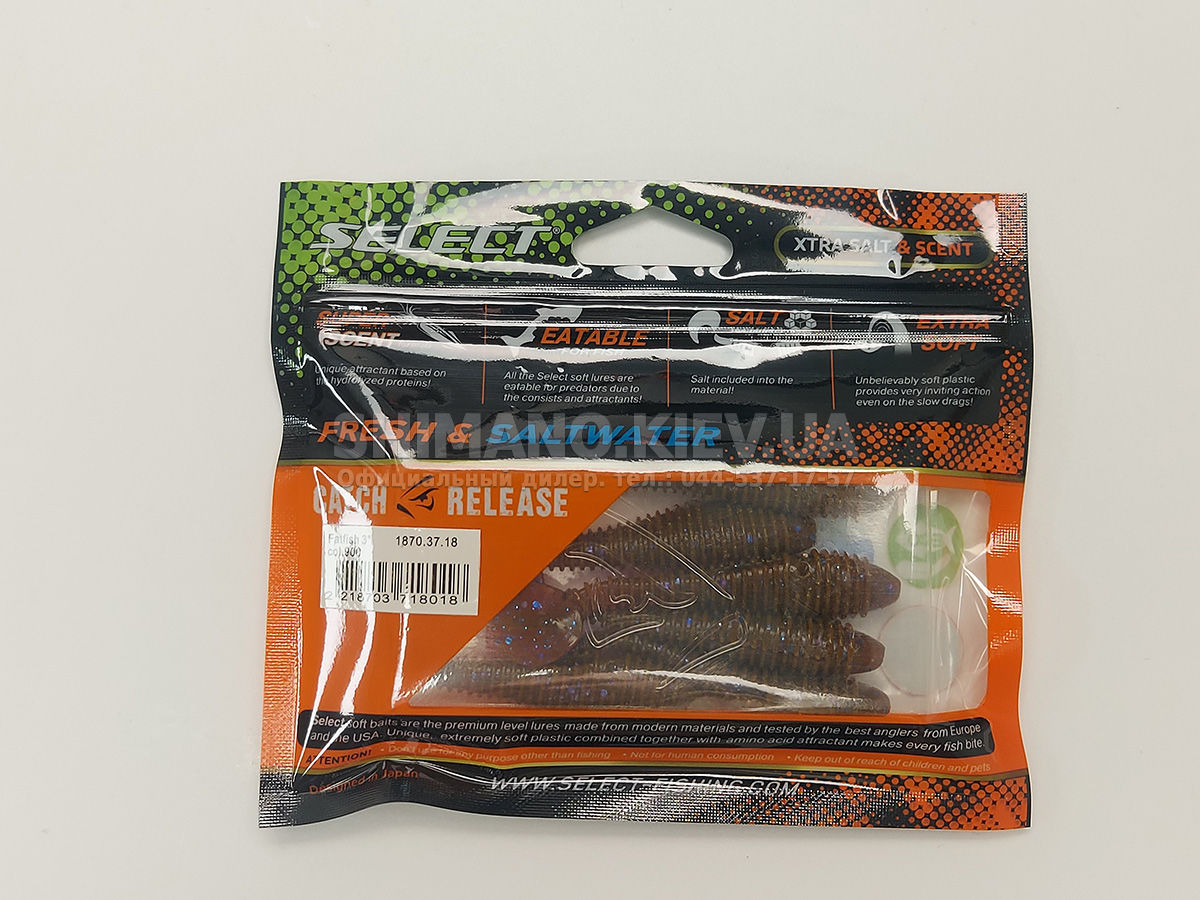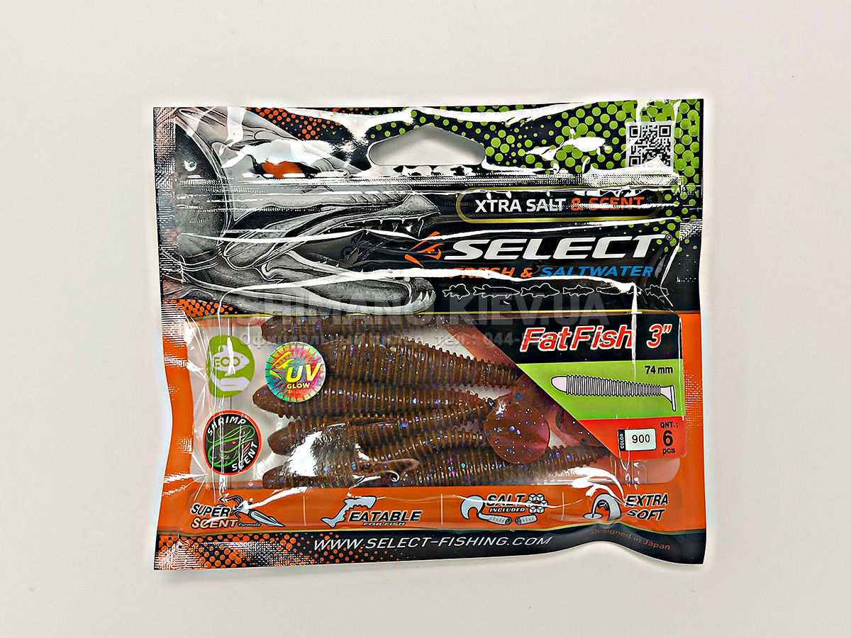 Силікон Select FatFish - віброхвіст з об'ємним тілом, покритим м'якими ребрами, як і у моделі FatFish. У приманки FatFish в нижній частині є спеціальне місце для додаткового підвантаження, якщо передбачається використовувати її в якості свімбейта. Під час проводки, за рахунок еластичності матеріалу, хвіст дуже розмашисто виляє по сторонам, вібрація від якого з великої відстані приваблює рибу. Ребра на тілі виконують кілька функцій. По-перше, вони створюють додаткову вібрацію, що приваблює рибу. По-друге, рифлене тіло на багато м'якше цільного, що позитивно позначається на грі приманки. По-третє, при клюванні риби, ребра легко зминаються і починають активно виділяти смакові добавки, що містяться в складі силікону, так що риба не помічає підступності і продовжує його заковтувати. Спокусливі виляння всім тілом і каламуть, що піднімається з дна джиг-головкою, активно привертають увагу риби, яка сміливо кидається на силікон.