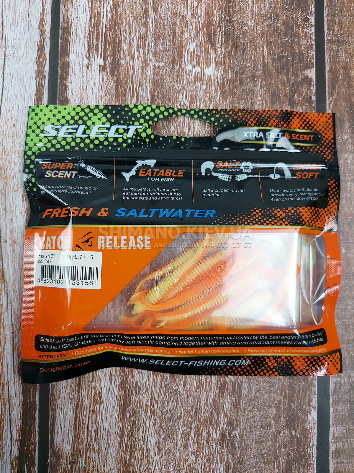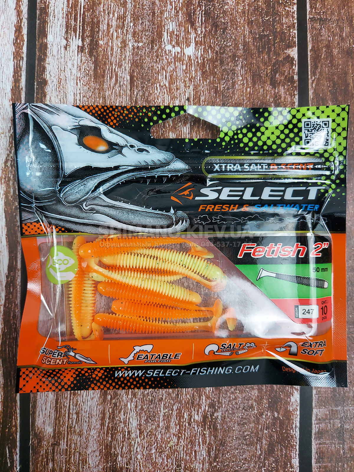 Новинка від компанії SELECT, їстівний силікон Fetish для лову судака, щуки, голавля та окуня . Приманка SELECT Fetish поєднує пасивне тіло хробака та активну п'яту віброхвоста, що включається при найменшому русі. Довга ребриста форма і еластичний матеріал Extra Soft створюють видимість малька, що годується, що дуже приваблює хижака. Унікальний аромат і смак Super Scent зводить рибу з розуму. Широкий асортимент розмірів дозволяє підібрати приманки для будь-якого типу та розміру хижака. Молодші моделі відмінно підходять для мікроджиг і всіх типів спінінгових оснащень. Більші розміри оптимальні для класичного джигу та рознесених оснасток.