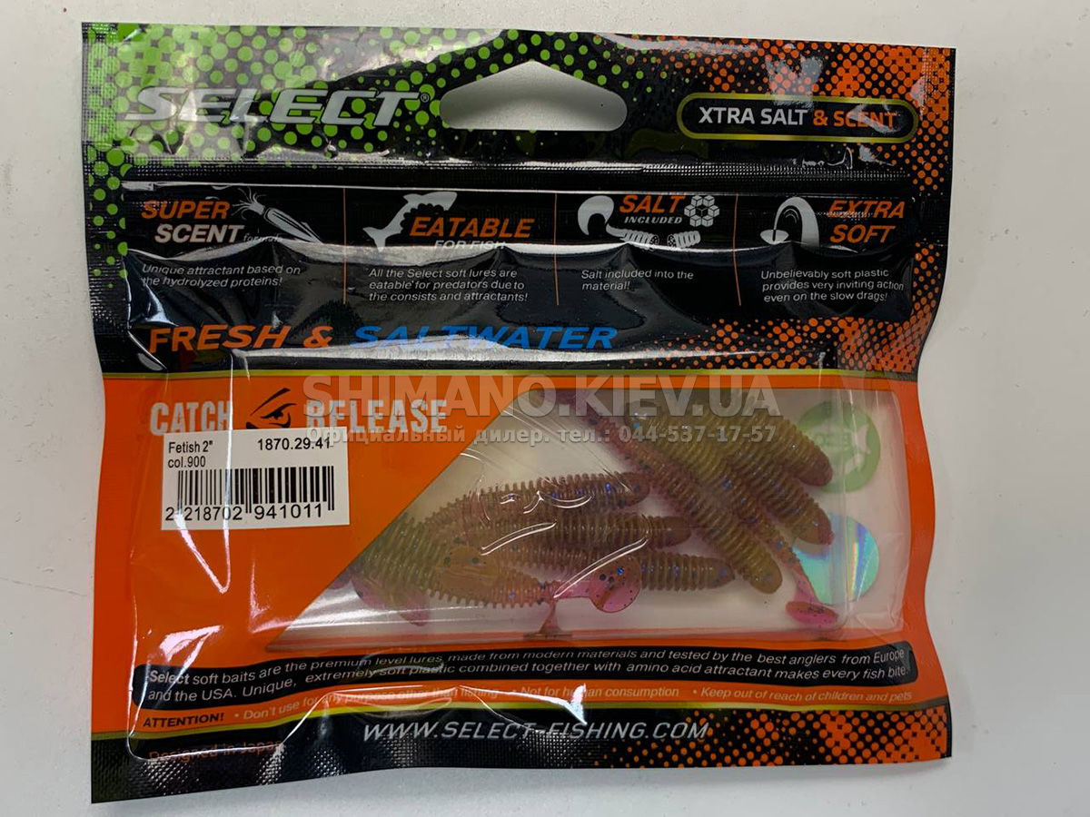 Новинка від компанії SELECT, їстівний силікон Fetish для лову судака, щуки, голавля та окуня . Приманка SELECT Fetish поєднує пасивне тіло хробака та активну п'яту віброхвоста, що включається при найменшому русі. Довга ребриста форма і еластичний матеріал Extra Soft створюють видимість малька, що годується, що дуже приваблює хижака. Унікальний аромат і смак Super Scent зводить рибу з розуму. Широкий асортимент розмірів дозволяє підібрати приманки для будь-якого типу та розміру хижака. Молодші моделі відмінно підходять для мікроджиг і всіх типів спінінгових оснащень. Більші розміри оптимальні для класичного джигу та рознесених оснасток.