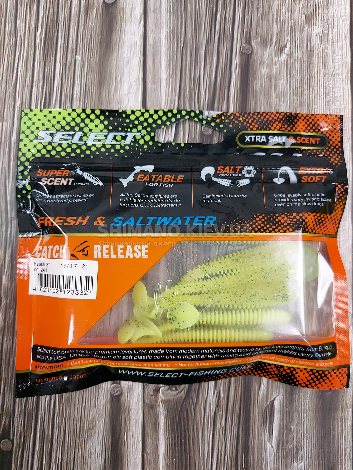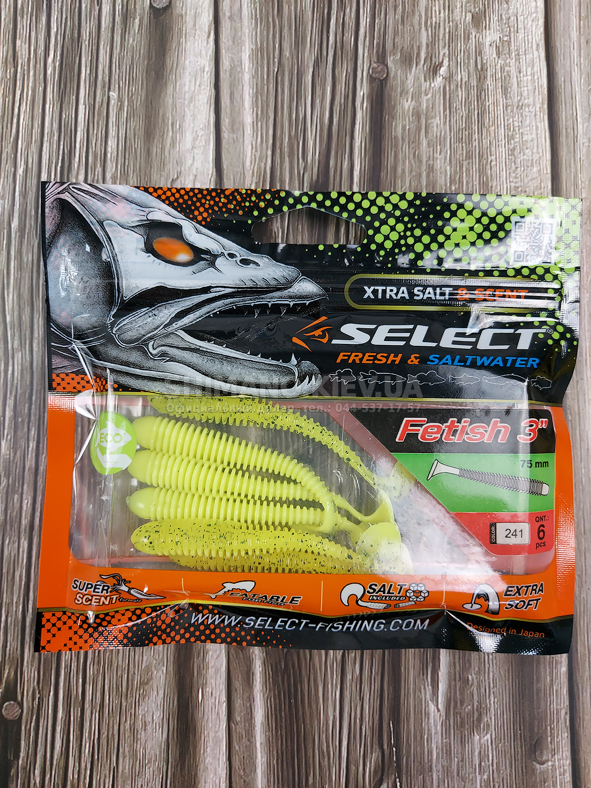 Новинка від компанії SELECT, їстівний силікон Fetish для лову судака, щуки, голавля та окуня . Приманка SELECT Fetish поєднує пасивне тіло хробака та активну п'яту віброхвоста, що включається при найменшому русі. Довга ребриста форма і еластичний матеріал Extra Soft створюють видимість малька, що годується, що дуже приваблює хижака. Унікальний аромат і смак Super Scent зводить рибу з розуму. Широкий асортимент розмірів дозволяє підібрати приманки для будь-якого типу та розміру хижака. Молодші моделі відмінно підходять для мікроджиг і всіх типів спінінгових оснащень. Більші розміри оптимальні для класичного джигу та рознесених оснасток.