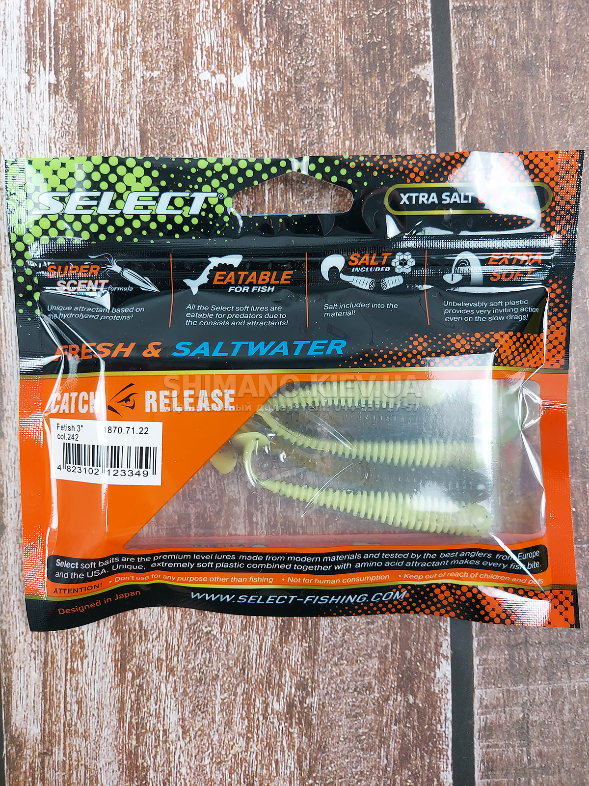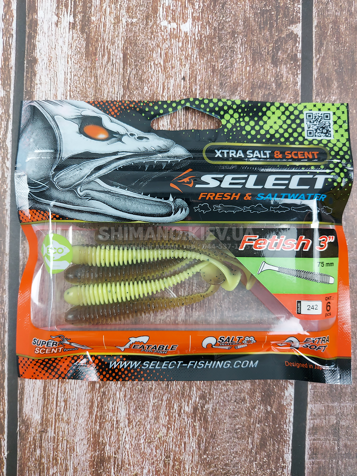 Новинка від компанії SELECT, їстівний силікон Fetish для лову судака, щуки, голавля та окуня . Приманка SELECT Fetish поєднує пасивне тіло хробака та активну п'яту віброхвоста, що включається при найменшому русі. Довга ребриста форма і еластичний матеріал Extra Soft створюють видимість малька, що годується, що дуже приваблює хижака. Унікальний аромат і смак Super Scent зводить рибу з розуму. Широкий асортимент розмірів дозволяє підібрати приманки для будь-якого типу та розміру хижака. Молодші моделі відмінно підходять для мікроджиг і всіх типів спінінгових оснащень. Більші розміри оптимальні для класичного джигу та рознесених оснасток.