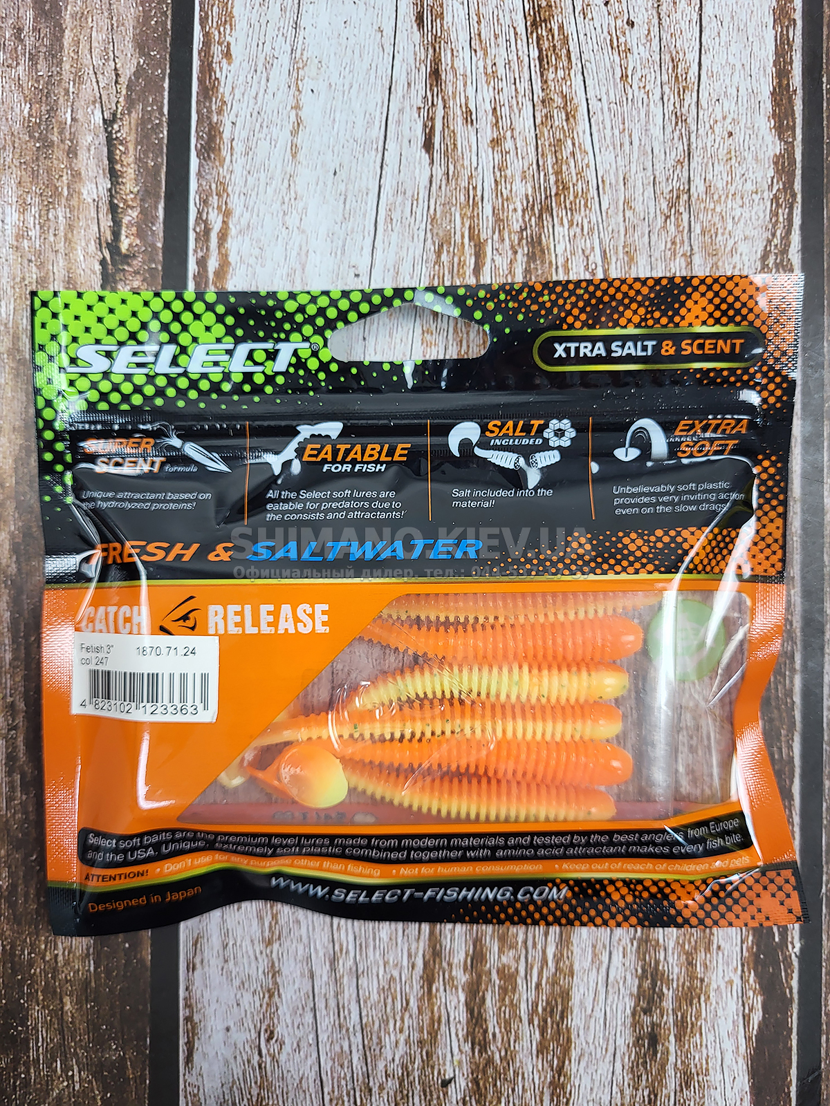 Новинка від компанії SELECT, їстівний силікон Fetish для лову судака, щуки, голавля та окуня . Приманка SELECT Fetish поєднує пасивне тіло хробака та активну п'яту віброхвоста, що включається при найменшому русі. Довга ребриста форма і еластичний матеріал Extra Soft створюють видимість малька, що годується, що дуже приваблює хижака. Унікальний аромат і смак Super Scent зводить рибу з розуму. Широкий асортимент розмірів дозволяє підібрати приманки для будь-якого типу та розміру хижака. Молодші моделі відмінно підходять для мікроджиг і всіх типів спінінгових оснащень. Більші розміри оптимальні для класичного джигу та рознесених оснасток.