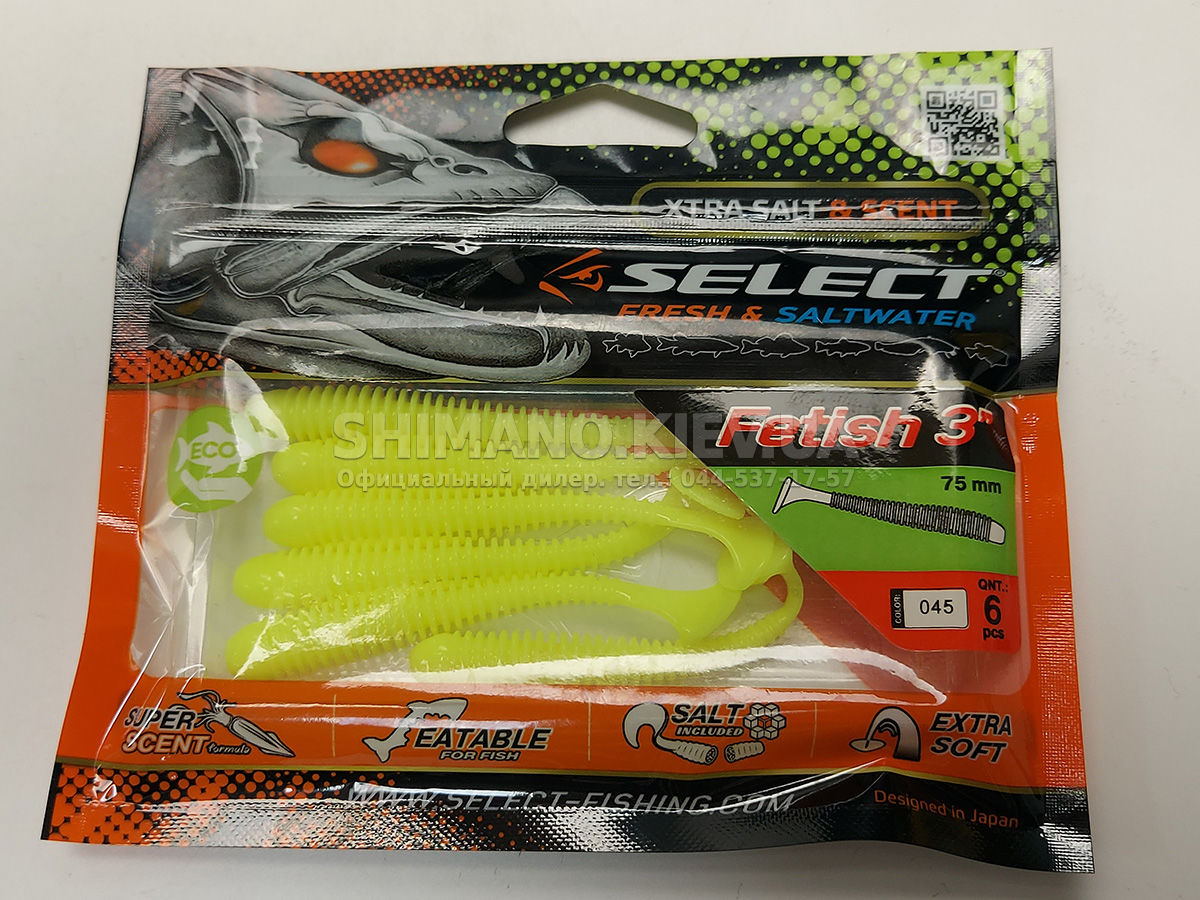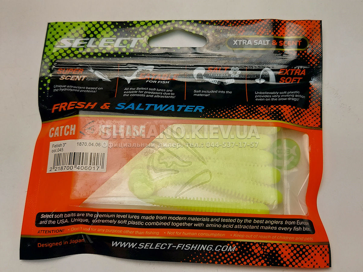Новинка від компанії SELECT, їстівний силікон Fetish для лову судака, щуки, голавля та окуня . Приманка SELECT Fetish поєднує пасивне тіло хробака та активну п'яту віброхвоста, що включається при найменшому русі. Довга ребриста форма і еластичний матеріал Extra Soft створюють видимість малька, що годується, що дуже приваблює хижака. Унікальний аромат і смак Super Scent зводить рибу з розуму. Широкий асортимент розмірів дозволяє підібрати приманки для будь-якого типу та розміру хижака. Молодші моделі відмінно підходять для мікроджиг і всіх типів спінінгових оснащень. Більші розміри оптимальні для класичного джигу та рознесених оснасток.