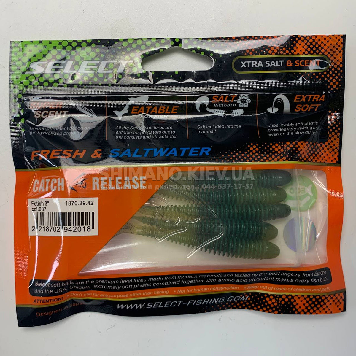 Новинка від компанії SELECT, їстівний силікон Fetish для лову судака, щуки, голавля та окуня . Приманка SELECT Fetish поєднує пасивне тіло хробака та активну п'яту віброхвоста, що включається при найменшому русі. Довга ребриста форма і еластичний матеріал Extra Soft створюють видимість малька, що годується, що дуже приваблює хижака. Унікальний аромат і смак Super Scent зводить рибу з розуму. Широкий асортимент розмірів дозволяє підібрати приманки для будь-якого типу та розміру хижака. Молодші моделі відмінно підходять для мікроджиг і всіх типів спінінгових оснащень. Більші розміри оптимальні для класичного джигу та рознесених оснасток.