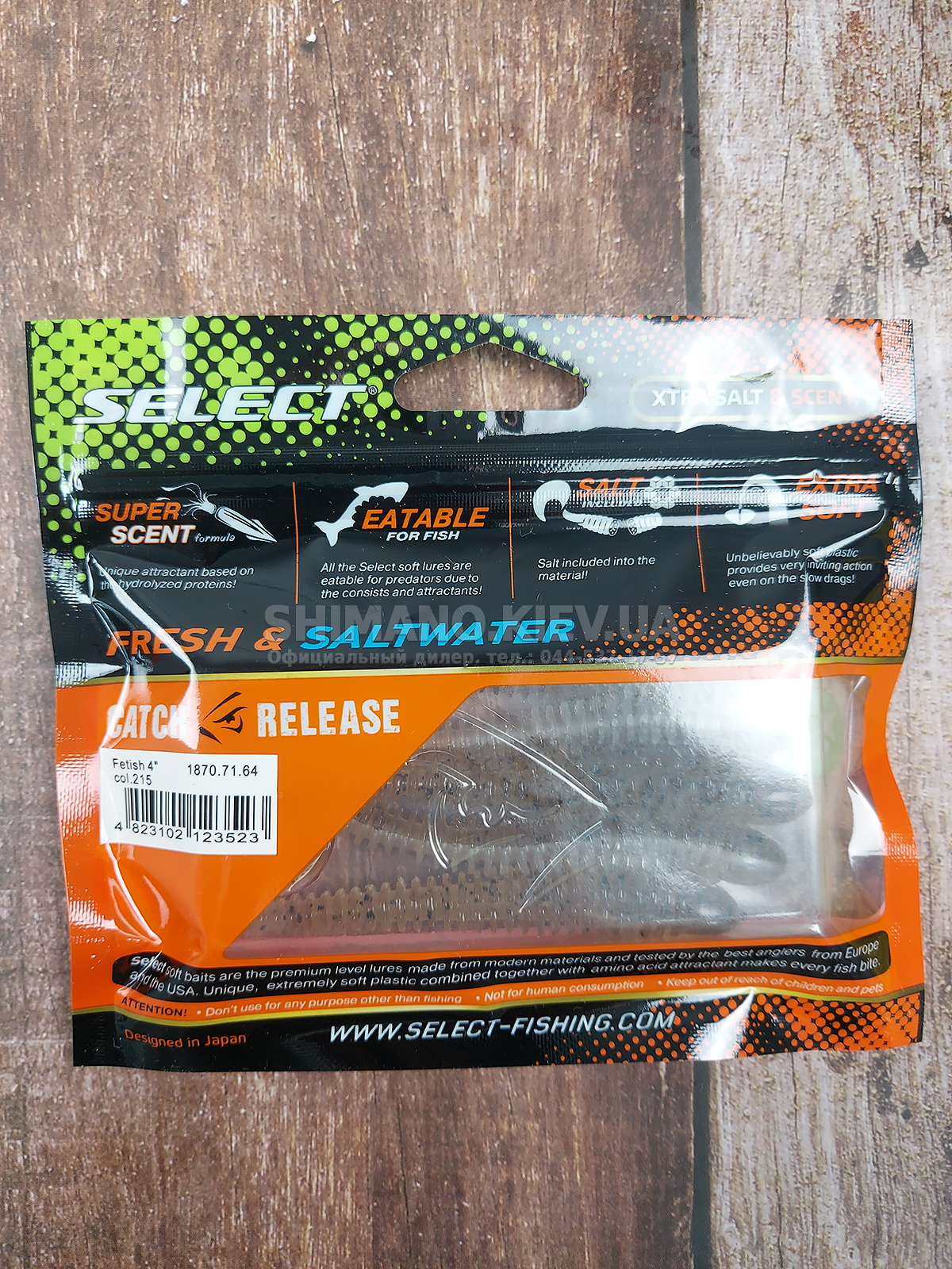 Новинка від компанії SELECT, їстівний силікон Fetish для лову судака, щуки, голавля та окуня . Приманка SELECT Fetish поєднує пасивне тіло хробака та активну п'яту віброхвоста, що включається при найменшому русі. Довга ребриста форма і еластичний матеріал Extra Soft створюють видимість малька, що годується, що дуже приваблює хижака. Унікальний аромат і смак Super Scent зводить рибу з розуму. Широкий асортимент розмірів дозволяє підібрати приманки для будь-якого типу та розміру хижака. Молодші моделі відмінно підходять для мікроджиг і всіх типів спінінгових оснащень. Більші розміри оптимальні для класичного джигу та рознесених оснасток.