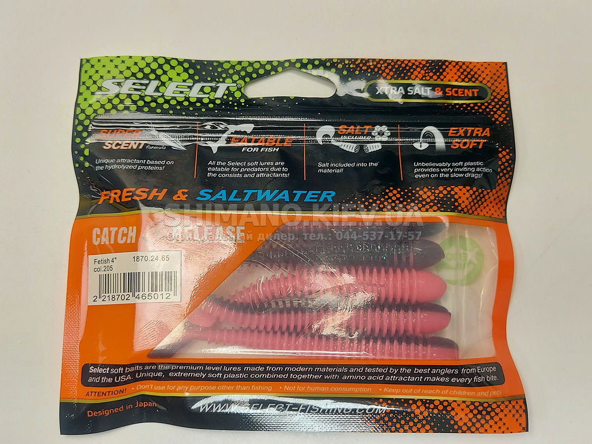 Новинка від компанії SELECT, їстівний силікон Fetish для лову судака, щуки, голавля та окуня . Приманка SELECT Fetish поєднує пасивне тіло хробака та активну п'яту віброхвоста, що включається при найменшому русі. Довга ребриста форма і еластичний матеріал Extra Soft створюють видимість малька, що годується, що дуже приваблює хижака. Унікальний аромат і смак Super Scent зводить рибу з розуму. Широкий асортимент розмірів дозволяє підібрати приманки для будь-якого типу та розміру хижака. Молодші моделі відмінно підходять для мікроджиг і всіх типів спінінгових оснащень. Більші розміри оптимальні для класичного джигу та рознесених оснасток.