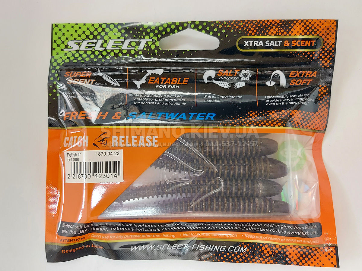 Новинка від компанії SELECT, їстівний силікон Fetish для лову судака, щуки, голавля та окуня . Приманка SELECT Fetish поєднує пасивне тіло хробака та активну п'яту віброхвоста, що включається при найменшому русі. Довга ребриста форма і еластичний матеріал Extra Soft створюють видимість малька, що годується, що дуже приваблює хижака. Унікальний аромат і смак Super Scent зводить рибу з розуму. Широкий асортимент розмірів дозволяє підібрати приманки для будь-якого типу та розміру хижака. Молодші моделі відмінно підходять для мікроджиг і всіх типів спінінгових оснащень. Більші розміри оптимальні для класичного джигу та рознесених оснасток.