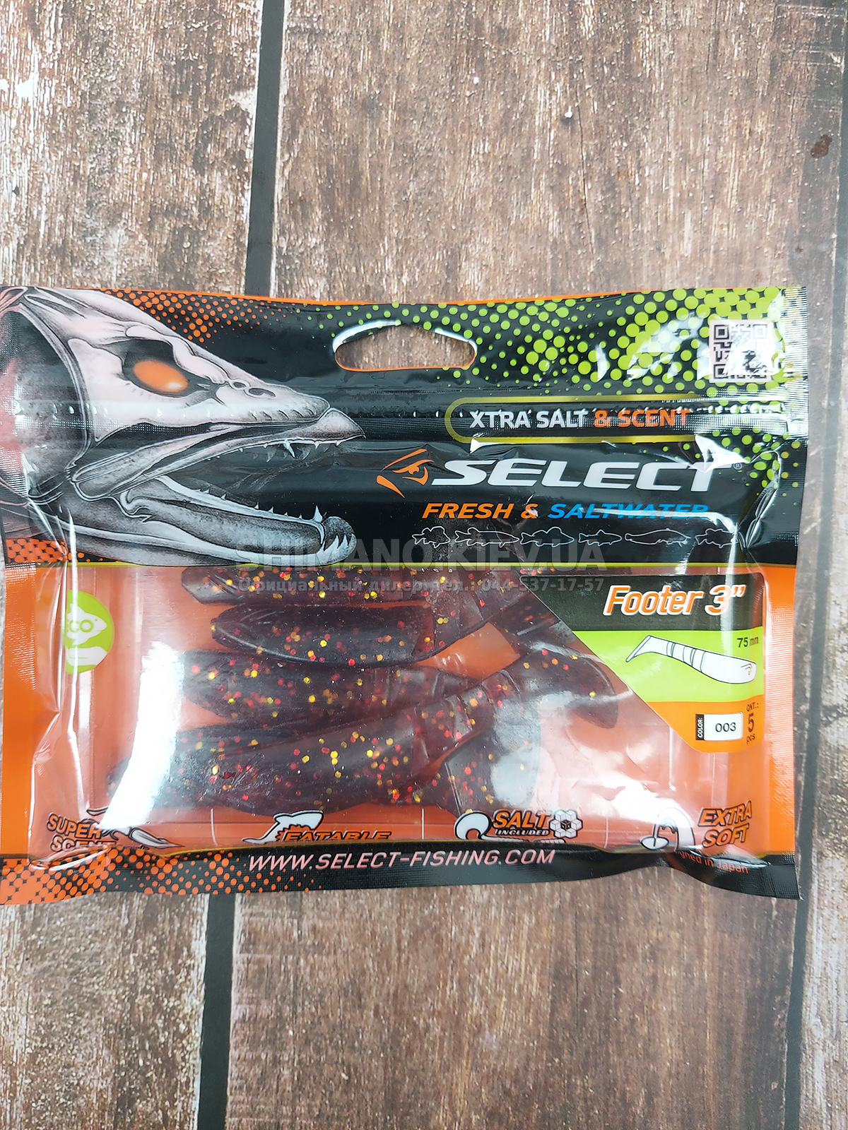 Силікон Select Footer - віброхвіст з класичною формою тіла, але з обтяженою п'ятою хвоста. Це дозволяє при проводці створювати додаткові коливання хвоста і тіла. Приманка Select Footer виконана з м'якого силікону, завдяки чому «
