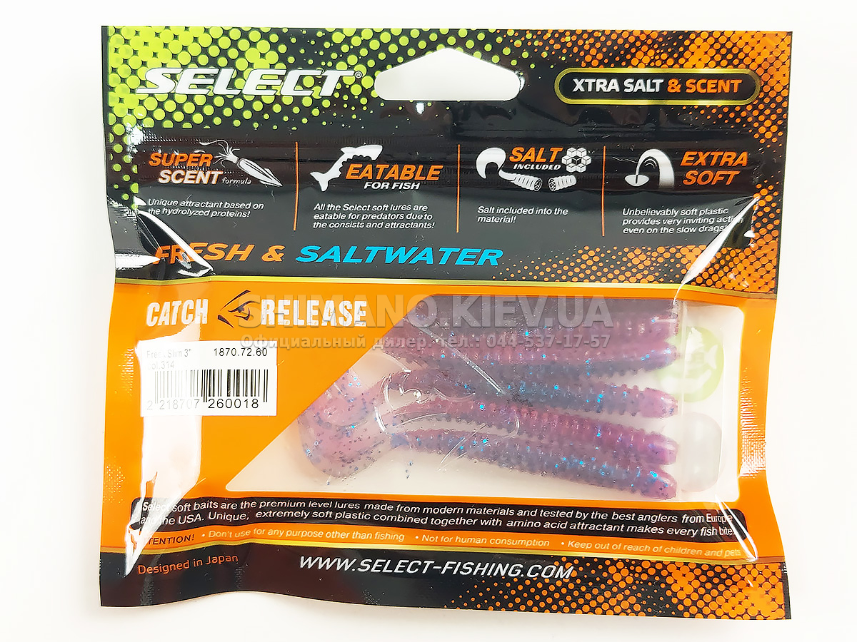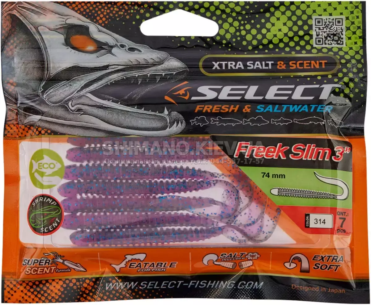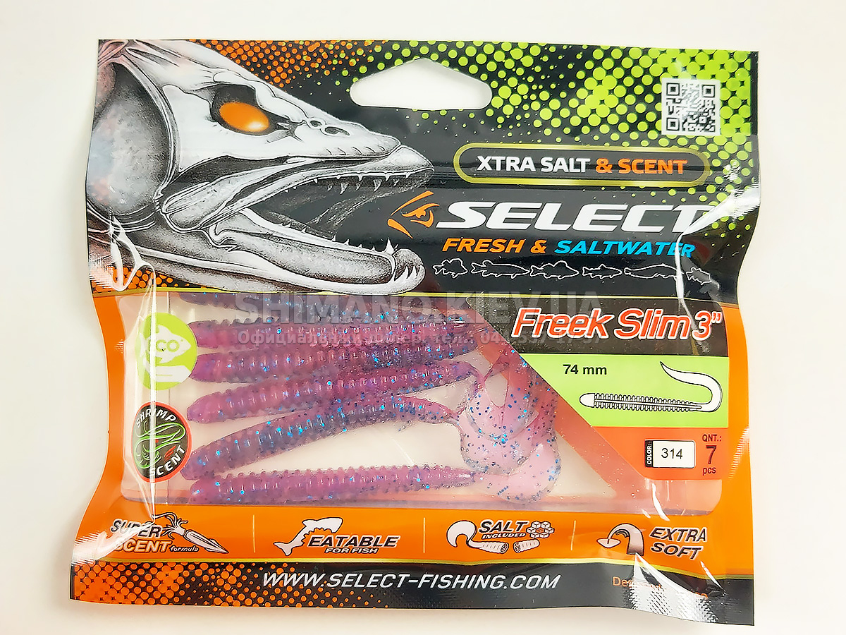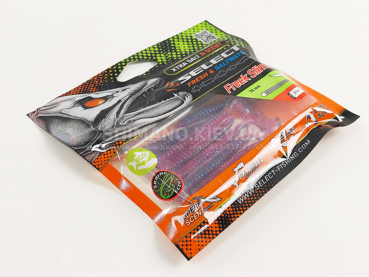 Випускається силікон Select Freek Slim у кількох розмірах, серед яких є оптимальні для цілеспрямованого лову окуня, а також більші, що застосовуються для полювання за судаком чи щукою.