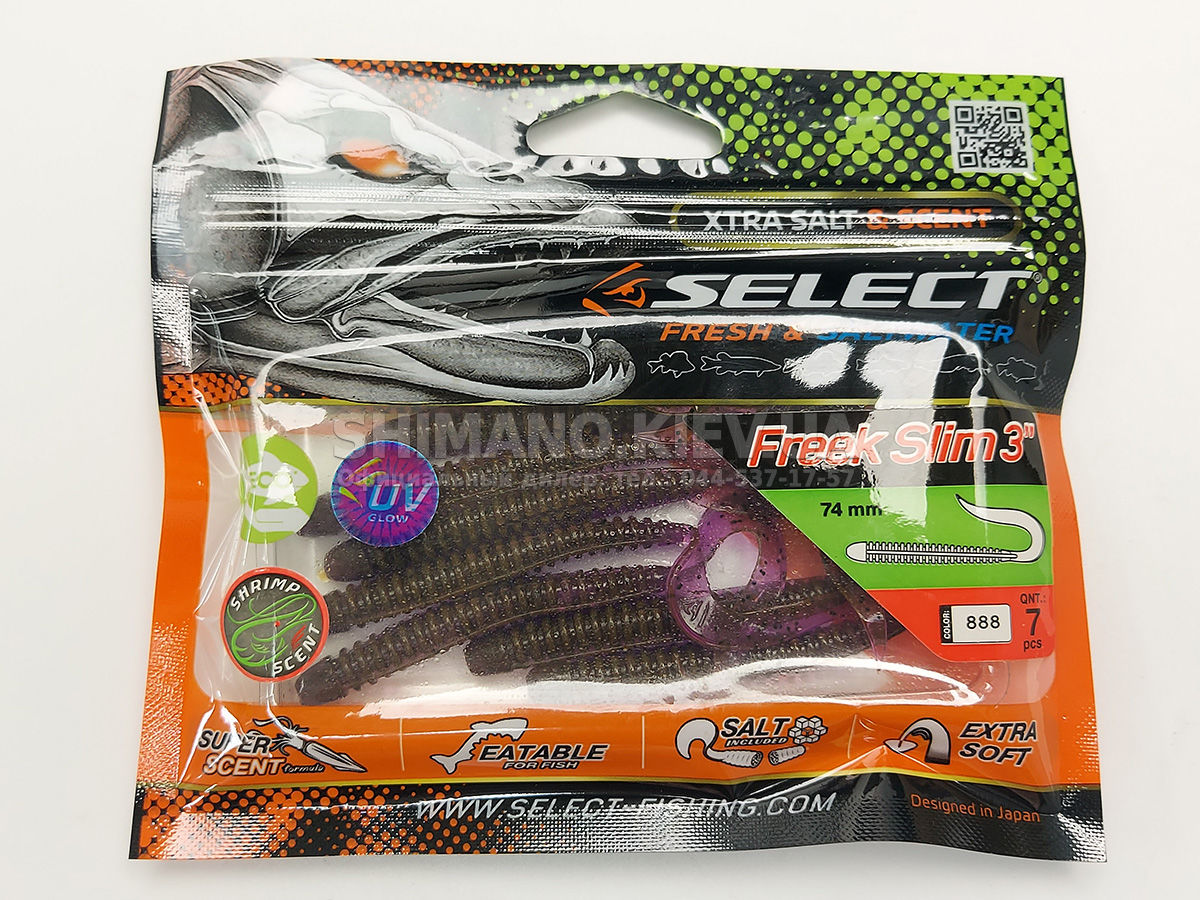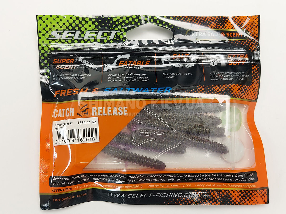 Випускається силікон Select Freek Slim у кількох розмірах, серед яких є оптимальні для цілеспрямованого лову окуня, а також більші, що застосовуються для полювання за судаком чи щукою.