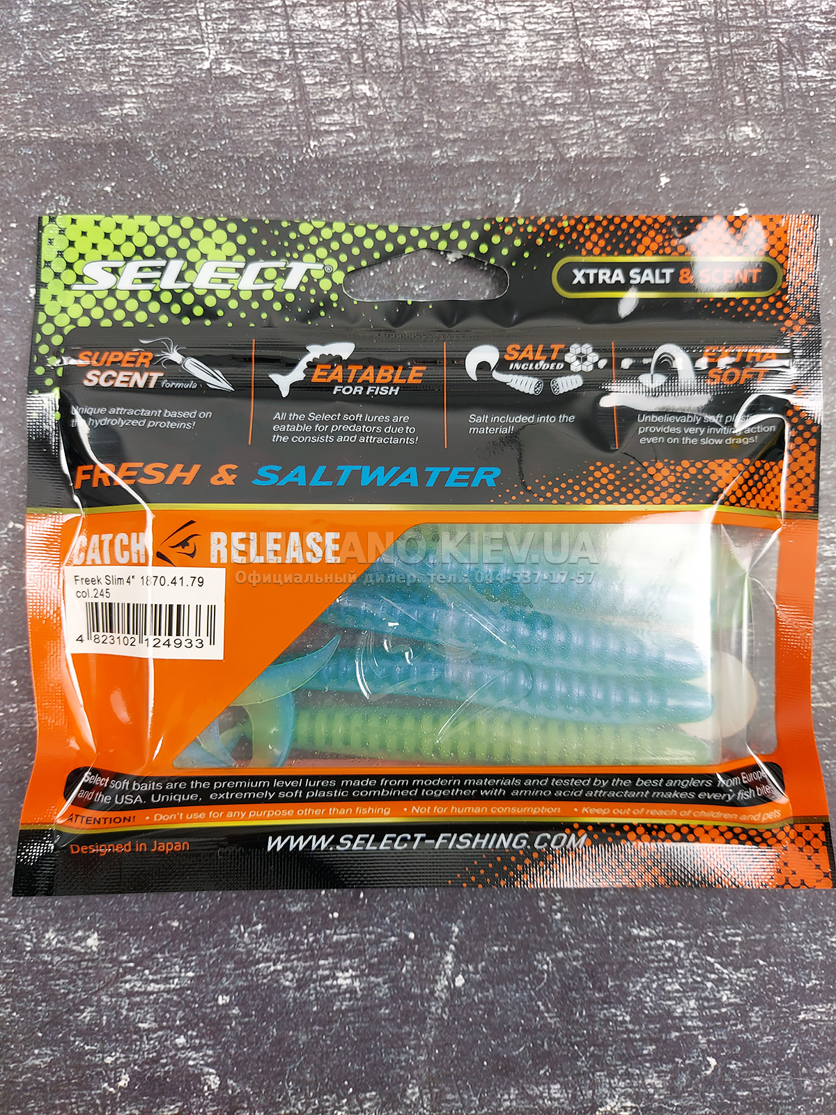 Випускається силікон Select Freek Slim у кількох розмірах, серед яких є оптимальні для цілеспрямованого лову окуня, а також більші, що застосовуються для полювання за судаком чи щукою.