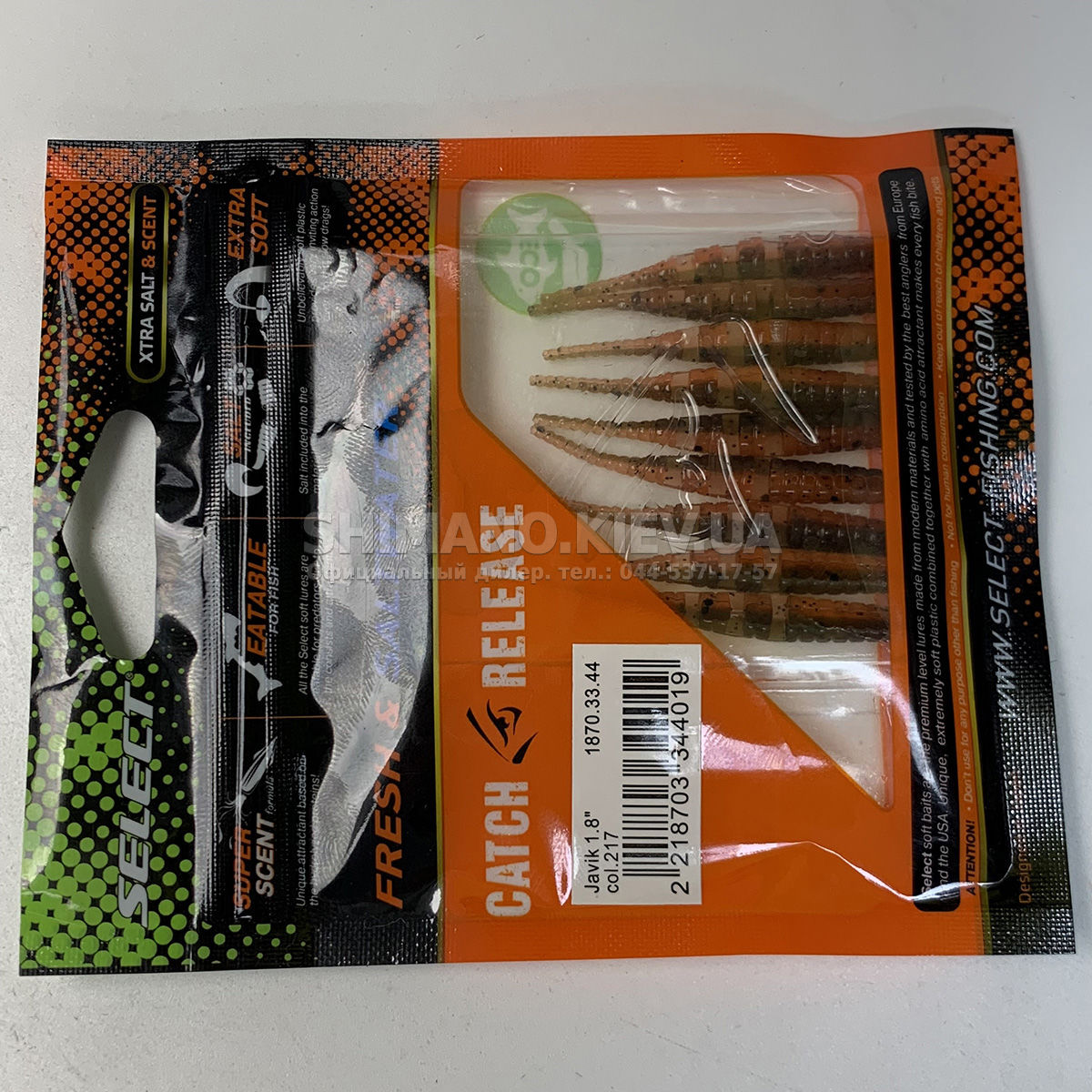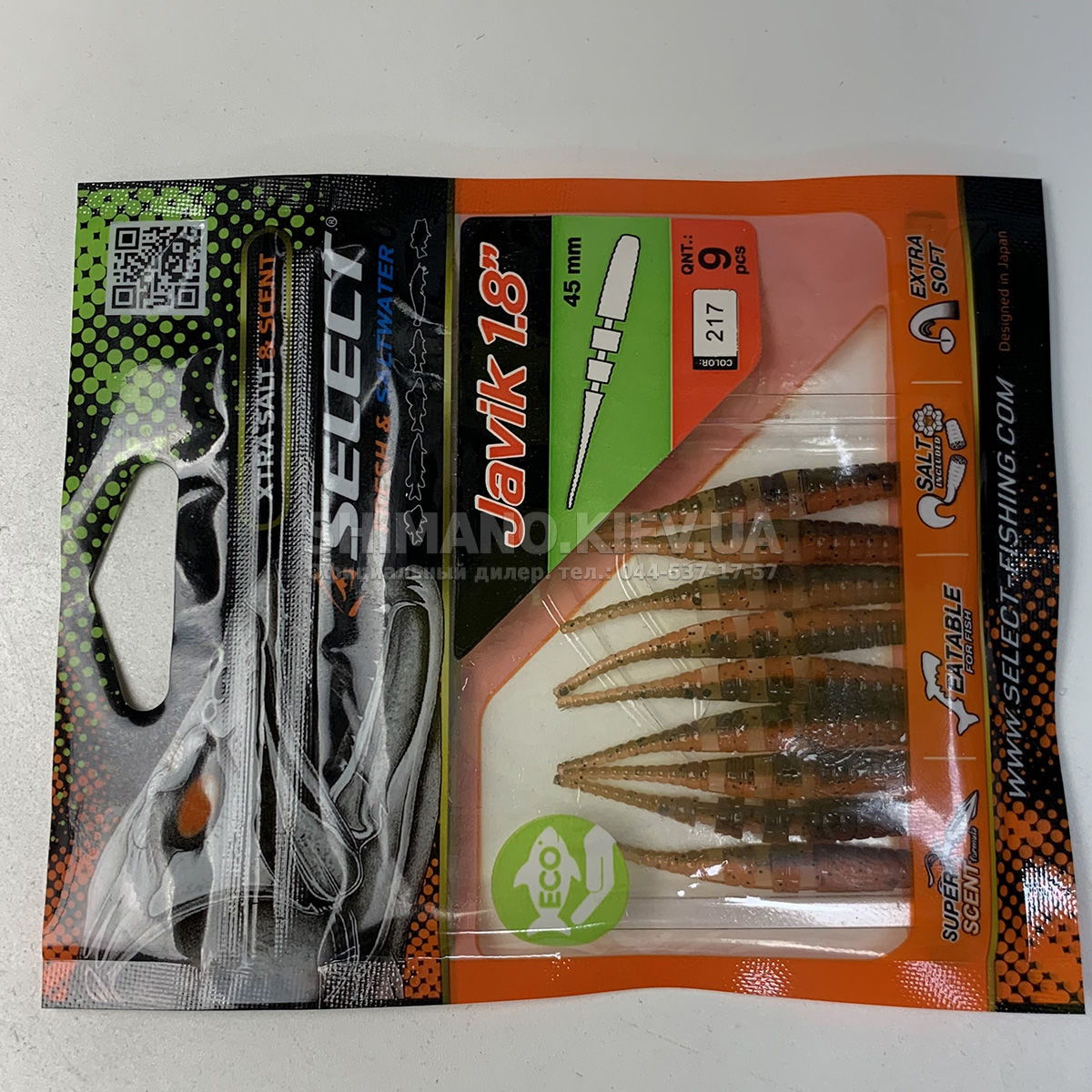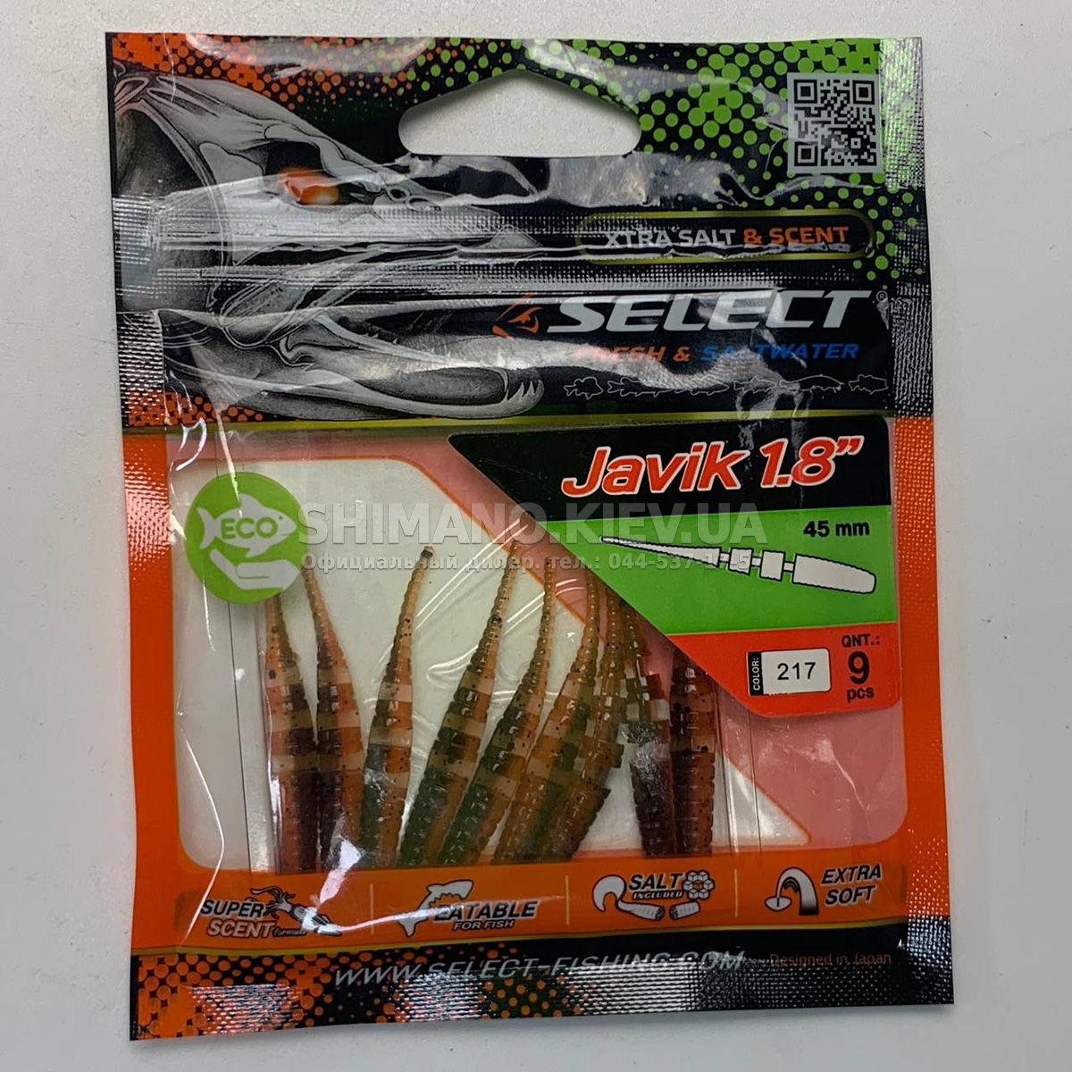 Select Javik є відмінним прикладом імітації черв'яка складної форми, що входить до раціону харчування більшості прісноводних риб. Принади, що розташовуються на серединно-хвостовому ділянці, витончені сегменти дозволяють реалізовувати природні рухи червоподібних, а високі їстівні властивості силіконового матеріалу виступають додатковим фактором до атаки приманки підводними мешканцями.