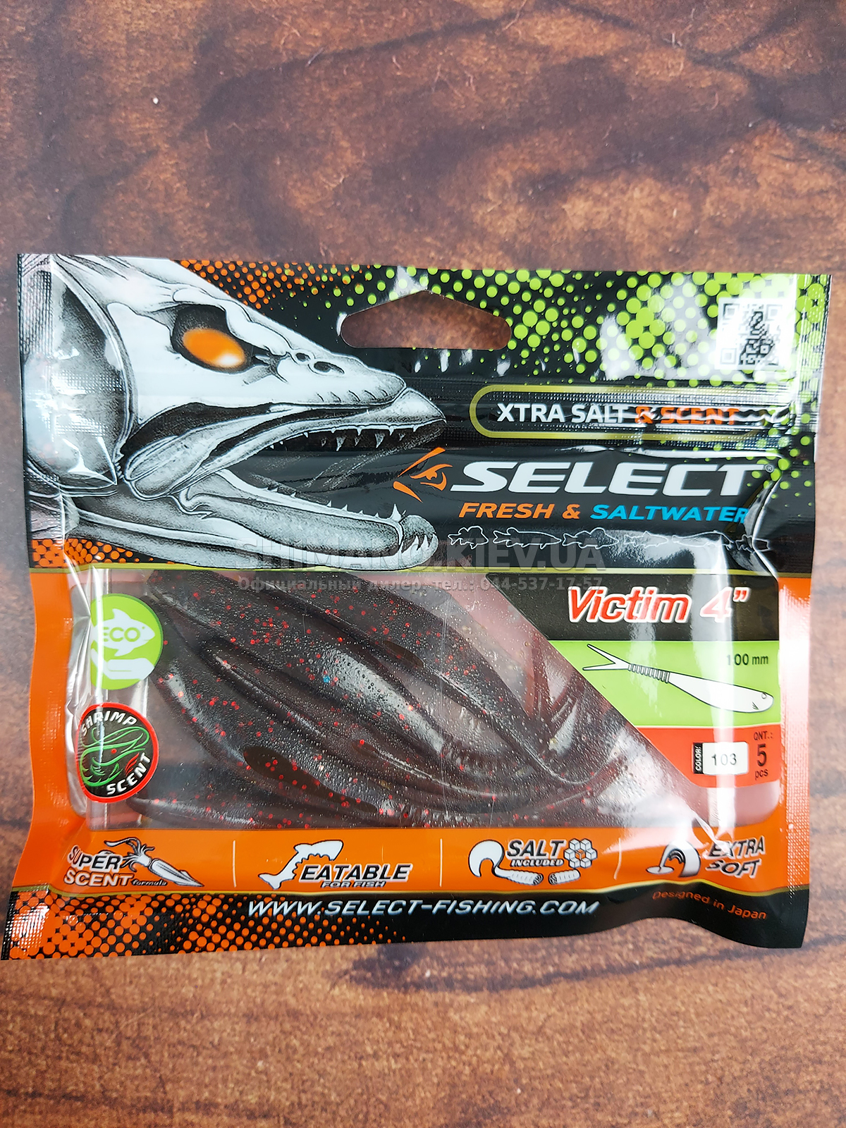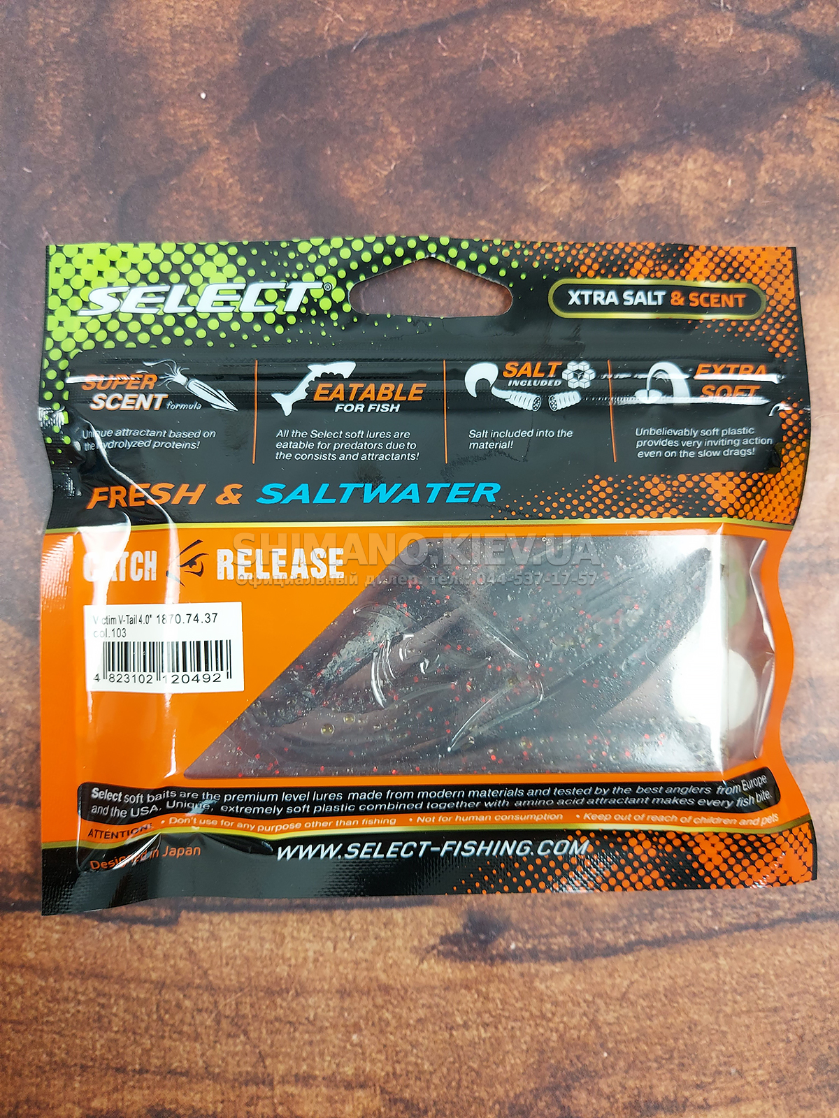 Силікон Select Victim V-Tail являє собою класичний слаг з V-подібним хвостом. Ребристе стерно хвоста сприяє збільшенню його міцності без шкоди рухливості. Приманка може оснащуватися на багато видів монтажів та різні типи гачків. Силікон ефективно працює при використанні, джигової техніки, дроп-шоту та повідцевого оснащення. Для підвищення ефективності ступінчастої проводки рекомендується у паузах виконувати похитування вершиною вудлища, що особливо провокує пасивну рибу. Додані до складу матеріалу сіль та атрактант збільшують привабливість приманки, оскільки вона залишає ароматний шлейф у воді та при обережному клюванні риба, відчуваючи їстівний смак, більш охоче захоплює слаг. Лінійка Victim V-Tail включає кілька розмірів від невеликих 2.5 дюймових до досить великих довжиною 6 дюймів. Така різноманітність дозволяє підібрати оптимальний варіант під певні види риби, а широка гама цікавих забарвлень ще більше підвищує ефективність у певних умовах на риболовлі.
