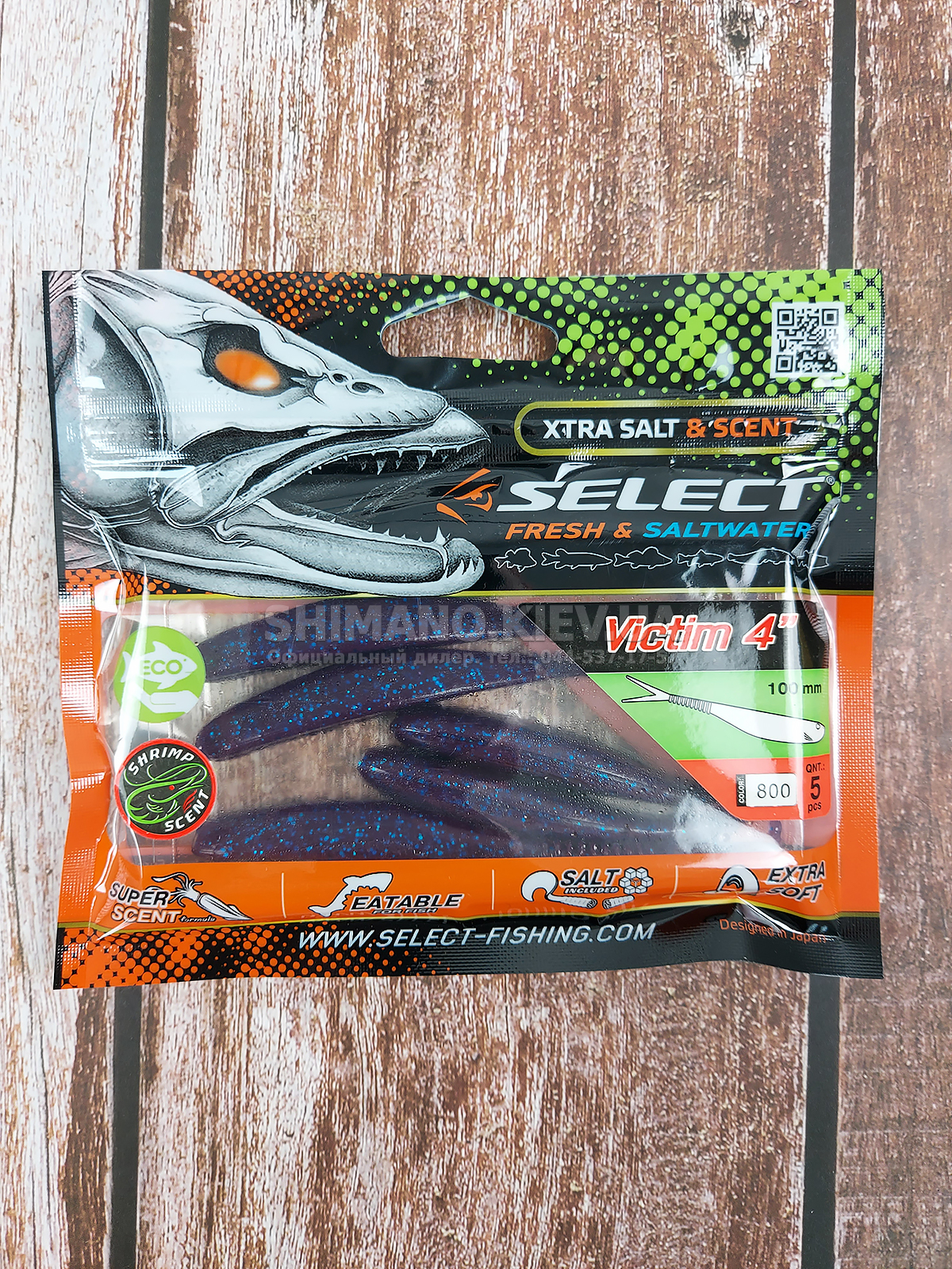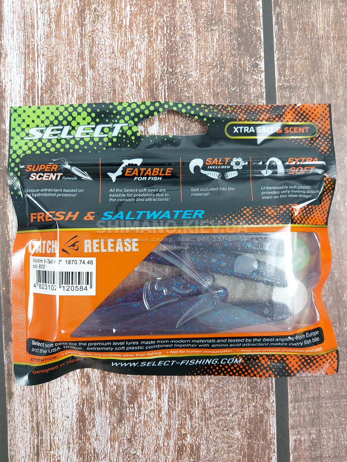 Силікон Select Victim V-Tail являє собою класичний слаг з V-подібним хвостом. Ребристе стерно хвоста сприяє збільшенню його міцності без шкоди рухливості. Приманка може оснащуватися на багато видів монтажів та різні типи гачків. Силікон ефективно працює при використанні, джигової техніки, дроп-шоту та повідцевого оснащення. Для підвищення ефективності ступінчастої проводки рекомендується у паузах виконувати похитування вершиною вудлища, що особливо провокує пасивну рибу. Додані до складу матеріалу сіль та атрактант збільшують привабливість приманки, оскільки вона залишає ароматний шлейф у воді та при обережному клюванні риба, відчуваючи їстівний смак, більш охоче захоплює слаг. Лінійка Victim V-Tail включає кілька розмірів від невеликих 2.5 дюймових до досить великих довжиною 6 дюймів. Така різноманітність дозволяє підібрати оптимальний варіант під певні види риби, а широка гама цікавих забарвлень ще більше підвищує ефективність у певних умовах на риболовлі.