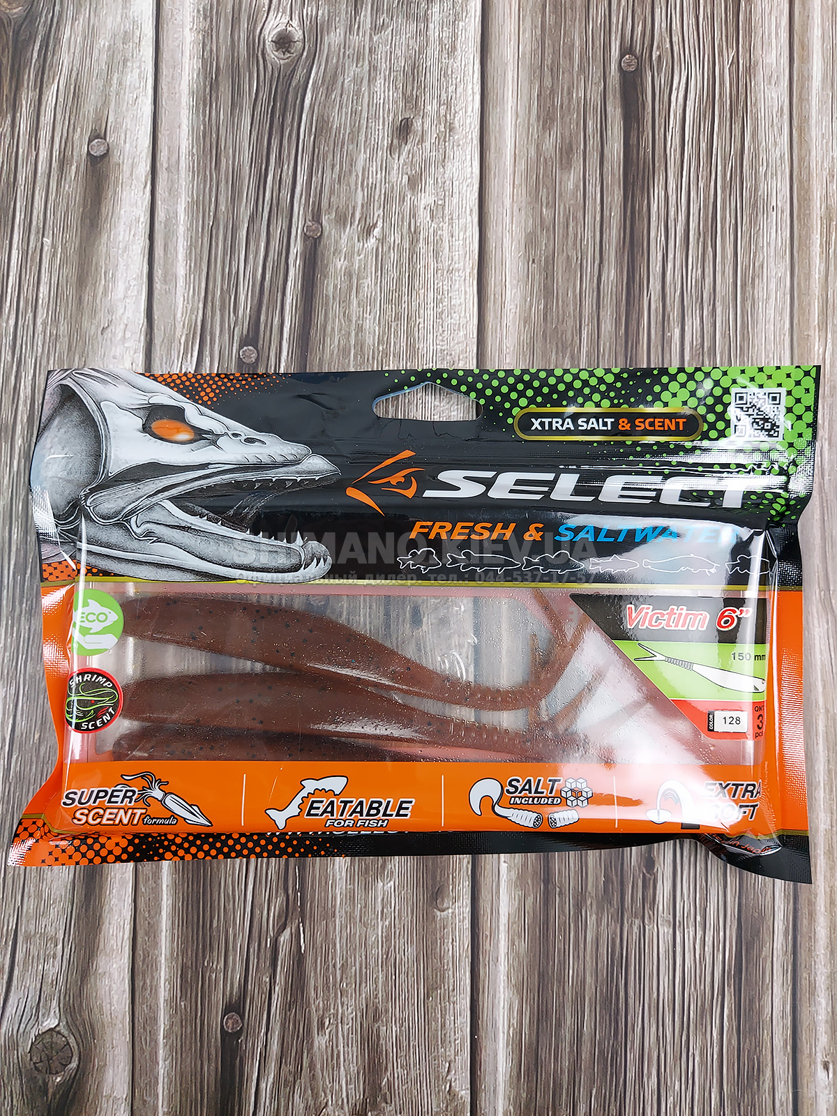 Силікон Select Victim V-Tail являє собою класичний слаг з V-подібним хвостом. Ребристе стерно хвоста сприяє збільшенню його міцності без шкоди рухливості. Приманка може оснащуватися на багато видів монтажів та різні типи гачків. Силікон ефективно працює при використанні, джигової техніки, дроп-шоту та повідцевого оснащення. Для підвищення ефективності ступінчастої проводки рекомендується у паузах виконувати похитування вершиною вудлища, що особливо провокує пасивну рибу. Додані до складу матеріалу сіль та атрактант збільшують привабливість приманки, оскільки вона залишає ароматний шлейф у воді та при обережному клюванні риба, відчуваючи їстівний смак, більш охоче захоплює слаг. Лінійка Victim V-Tail включає кілька розмірів від невеликих 2.5 дюймових до досить великих довжиною 6 дюймів. Така різноманітність дозволяє підібрати оптимальний варіант під певні види риби, а широка гама цікавих забарвлень ще більше підвищує ефективність у певних умовах на риболовлі.