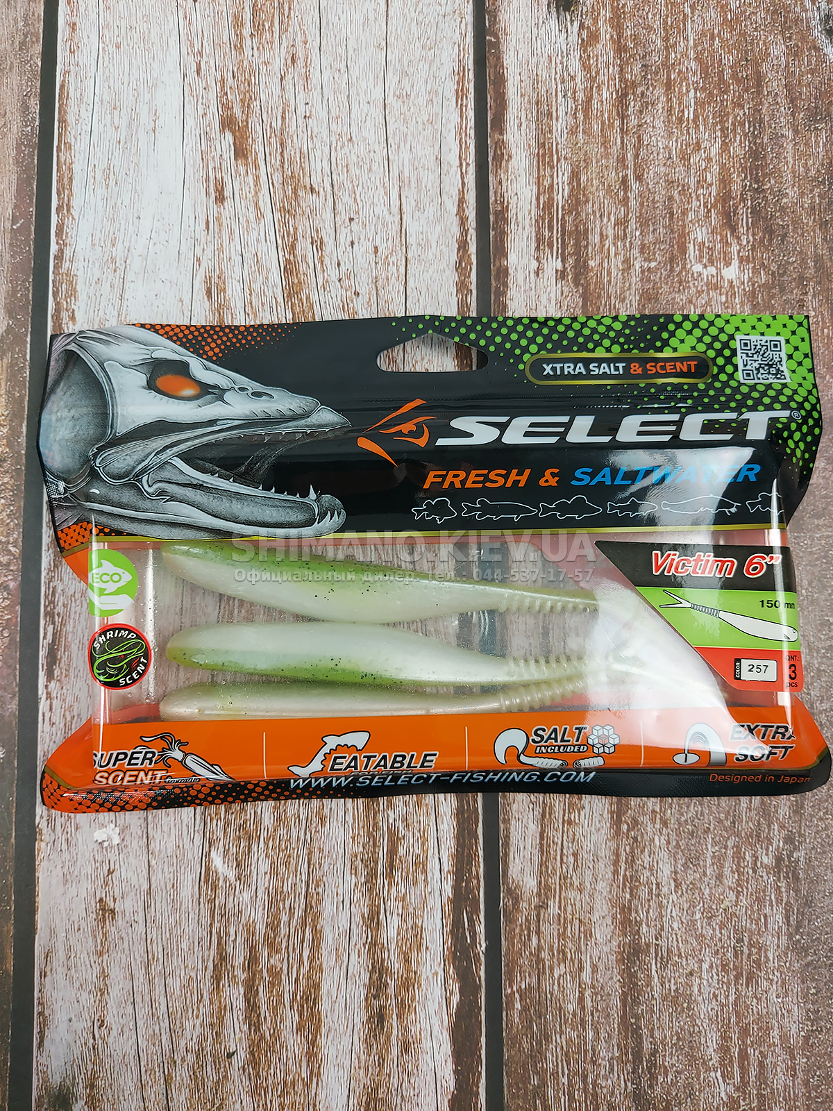 Силікон Select Victim V-Tail являє собою класичний слаг з V-подібним хвостом. Ребристе стерно хвоста сприяє збільшенню його міцності без шкоди рухливості. Приманка може оснащуватися на багато видів монтажів та різні типи гачків. Силікон ефективно працює при використанні, джигової техніки, дроп-шоту та повідцевого оснащення. Для підвищення ефективності ступінчастої проводки рекомендується у паузах виконувати похитування вершиною вудлища, що особливо провокує пасивну рибу. Додані до складу матеріалу сіль та атрактант збільшують привабливість приманки, оскільки вона залишає ароматний шлейф у воді та при обережному клюванні риба, відчуваючи їстівний смак, більш охоче захоплює слаг. Лінійка Victim V-Tail включає кілька розмірів від невеликих 2.5 дюймових до досить великих довжиною 6 дюймів. Така різноманітність дозволяє підібрати оптимальний варіант під певні види риби, а широка гама цікавих забарвлень ще більше підвищує ефективність у певних умовах на риболовлі.