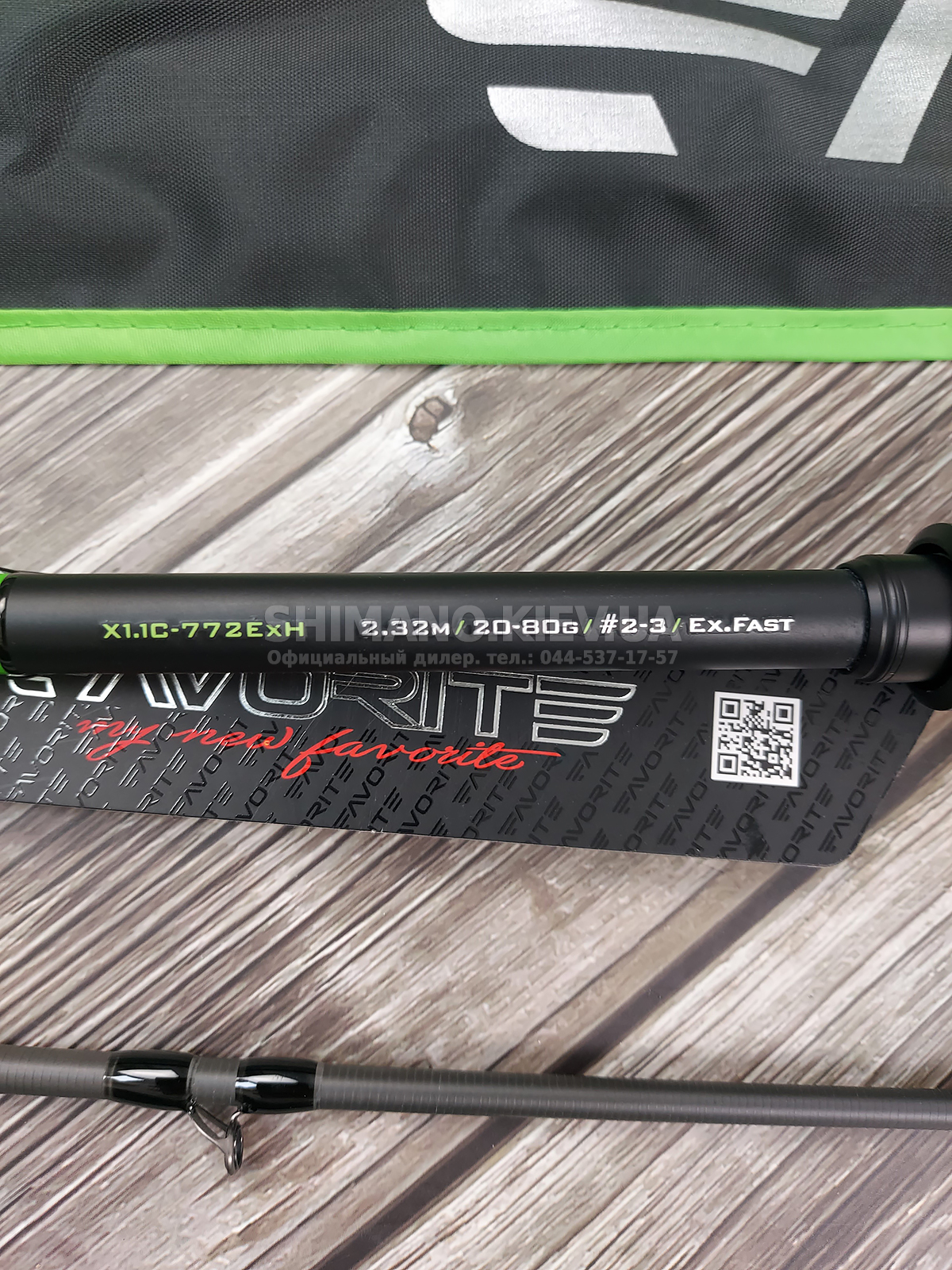 Вудилище спінінгове Favorite X1 General Casting Heavy (X1.1C 772ExH) 2.32 м (тестовий діапазон по принадах 20-80 грам) лад Ex.Fast, артикул 1693.06.96, підійде для лову важким джигом на великих річках з течією або великої риби на великі принади в складних умовах. Переважно призначені для лову з човна. Підходять також для лову на невеликі свімбейти і мають додаткове маркування з розмірами рекомендованих свімбейтів.