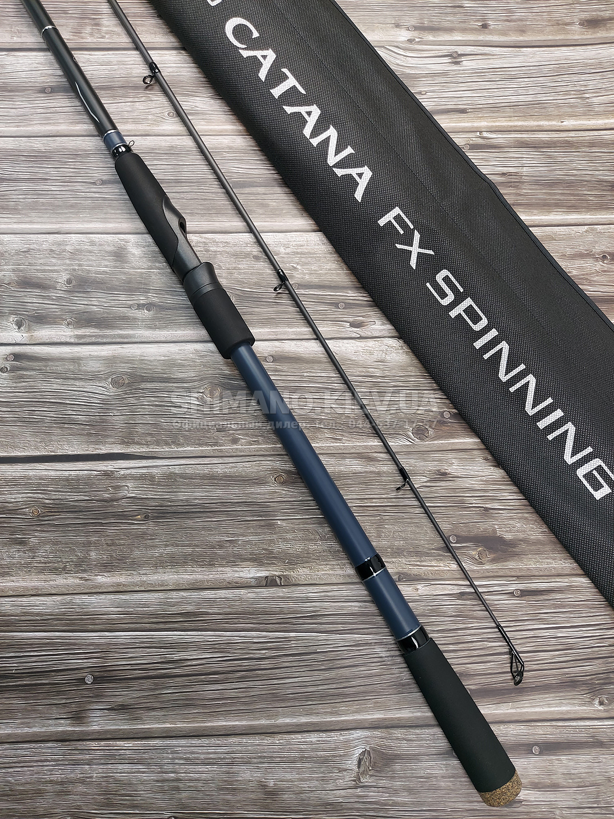 Бланк Shimano Catana FX Spinning вироблений із сучасного карбону Geofibre, до складу якого додані натуральні волокна, що надають матеріалу більшої міцності та пружності. На спінінгу встановлені пропускні кільця Shimano Hardlite з легкими зносостійкими вставками, які добре працюють як з моножилками, так і з плетеними шнурами. Надійну фіксацію котушки та зручне утримання вудилища забезпечують котушкотримач VSS-Type з нижньою затискною гайкою та рознесена ручка ергономічної форми, виконана з пробкового дерева та EVA.