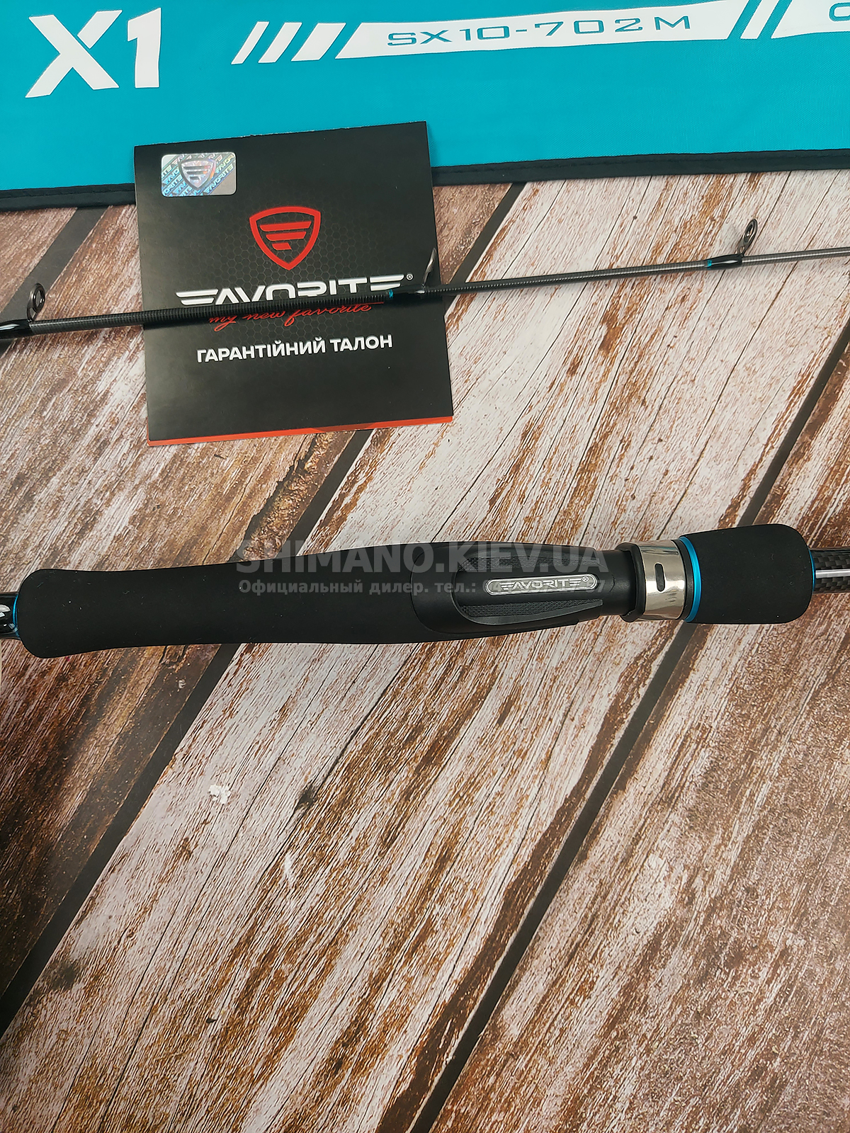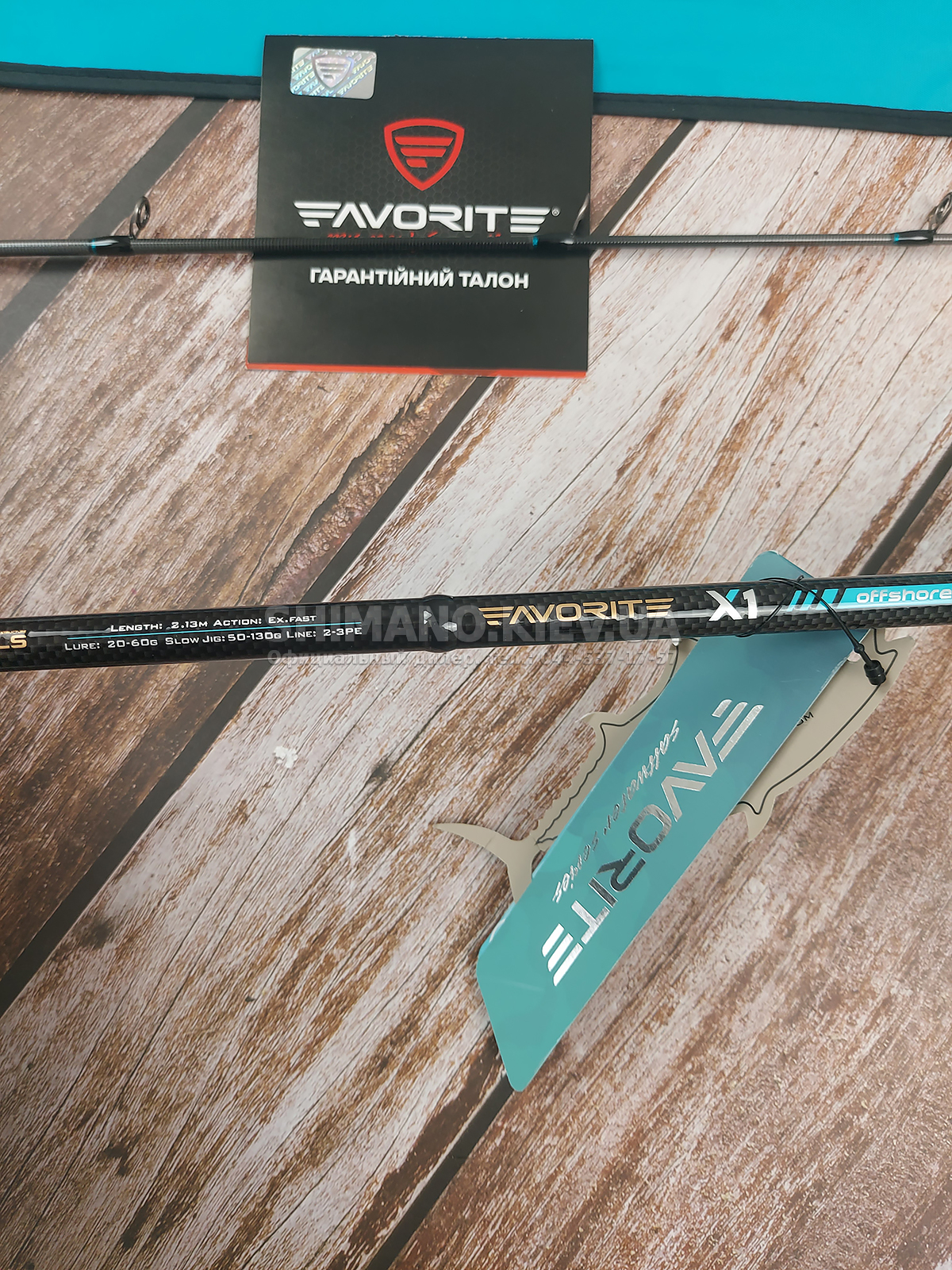 Спінінг Favorite SW X1 Offshore - відноситься до серії коротких і дуже потужних вудилищ, призначених для морського лову великої риби з човна. При цьому його конструкція дозволяє ловити однаково ефективно як у занедбаність (воблерами і блешнями), так і на виска - методом Slow Jig (силіконом і пілкерами). Дуже потужний бланк із карбону IM24T здатний витримувати високі навантаження на вигин, не дозволяючи рибі зійти з гачка. Як і належить для спінінгів подібного класу, пропускні кільця мають посилену конструкцію та оснащені вставками Sic. Ручка довга, виконана з матеріалу  EVA, що дозволяє зручно утримувати вудилище під час закидання приманки та боротьби з великим хижаком.
