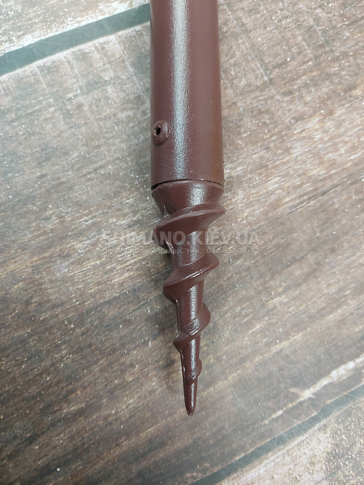 Загострений наконечник із ручкою — легко вкручується в твердий ґрунт або кам’янистий берег.