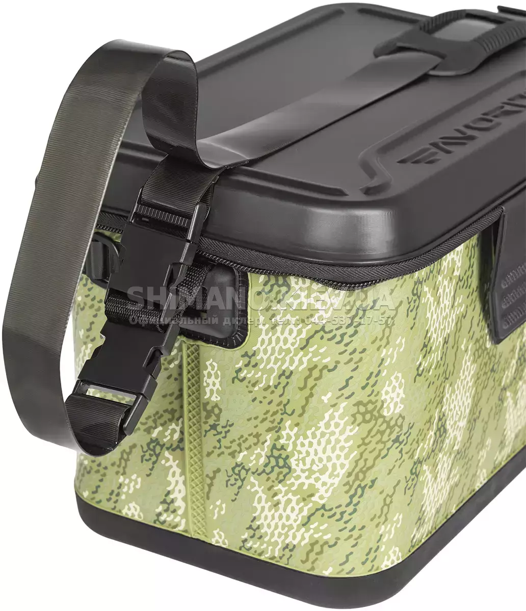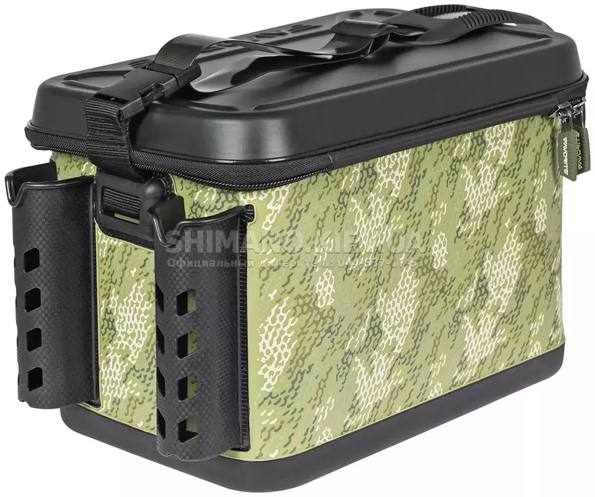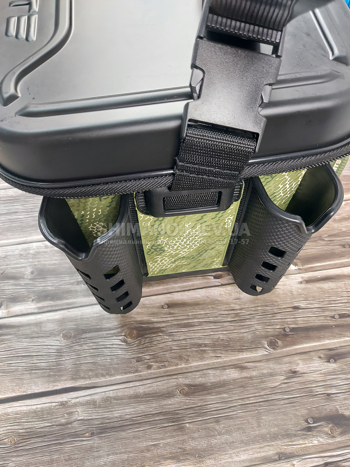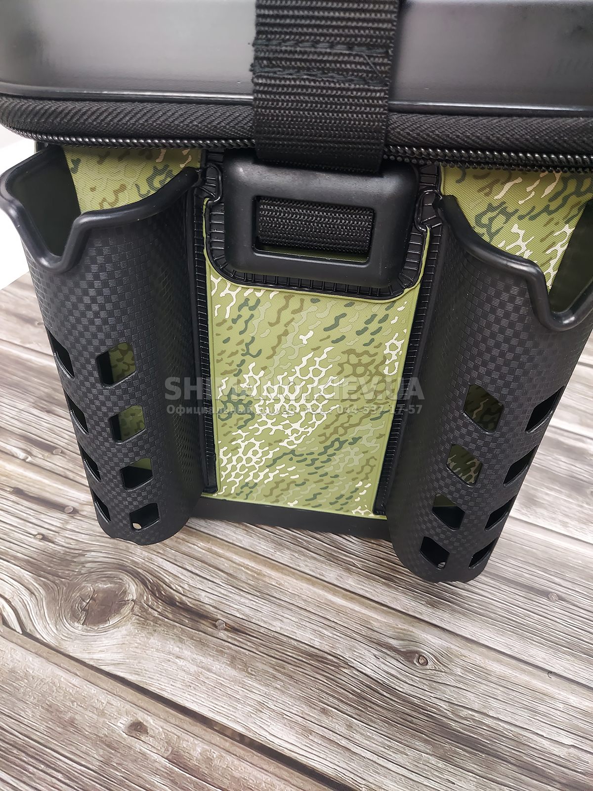 Сумка Favorite Tackle Bakkan – легкий та зручний ящик з кришкою, який застосовується для зберігання та перенесення рибальських снастей. Вона виконана з EVA матеріалу, а її шви мають паяну конструкцію, тому вона є водонепроникною і при необхідності легко миється як зовні, так і всередині. Міцний каркас, завдяки литому жорсткому пластиковому дну, товстому дроту по канту зверху і дуже зносостійкій тканині EVA товщиною 1.8 мм, добре зберігає форму, тим самим захищаючи вміст від ударів та інших пошкоджень. Відкидна кришка закривається за допомогою великої надійної блискавки, яка в закритому стані може використовуватися як невеликий монтажний столик для снастей. Зовні сумка Favorite Tackle Bakkan з одного боку оснащена двома тримачами для вудилищ, а з іншого – D-подібним кільцем для кріплення рибальського інструменту (ліпгрипу, ретрівера тощо). Ще одне D-подібне кільце знаходиться на передній частині.