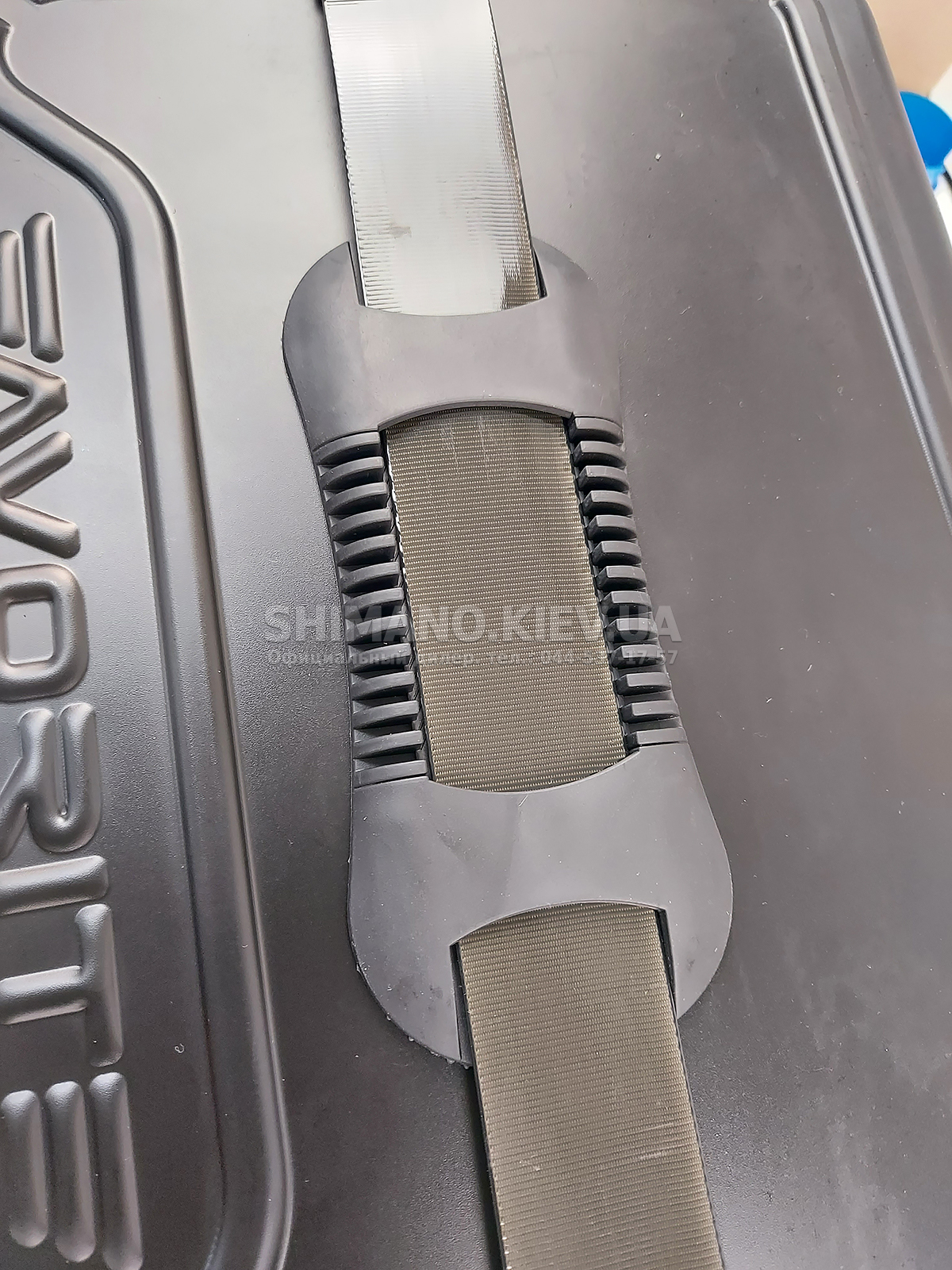 На особливу увагу заслуговує плечовий ремінь з ПВХ із двома точками кріплення для швидкої зміни довжини ременя. Це зроблено для того, щоб зручно було переносити баккан як на плечі, так і в руці, а при необхідності взагалі зняти ремінь, який може заважати при знаходженні, наприклад, у човні.