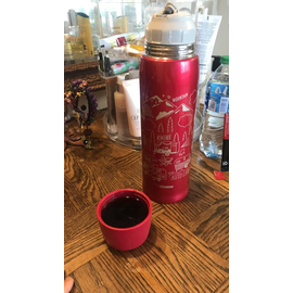 Довго тримає. Не протікає. Легкий. Зручна кришка з клапаном.