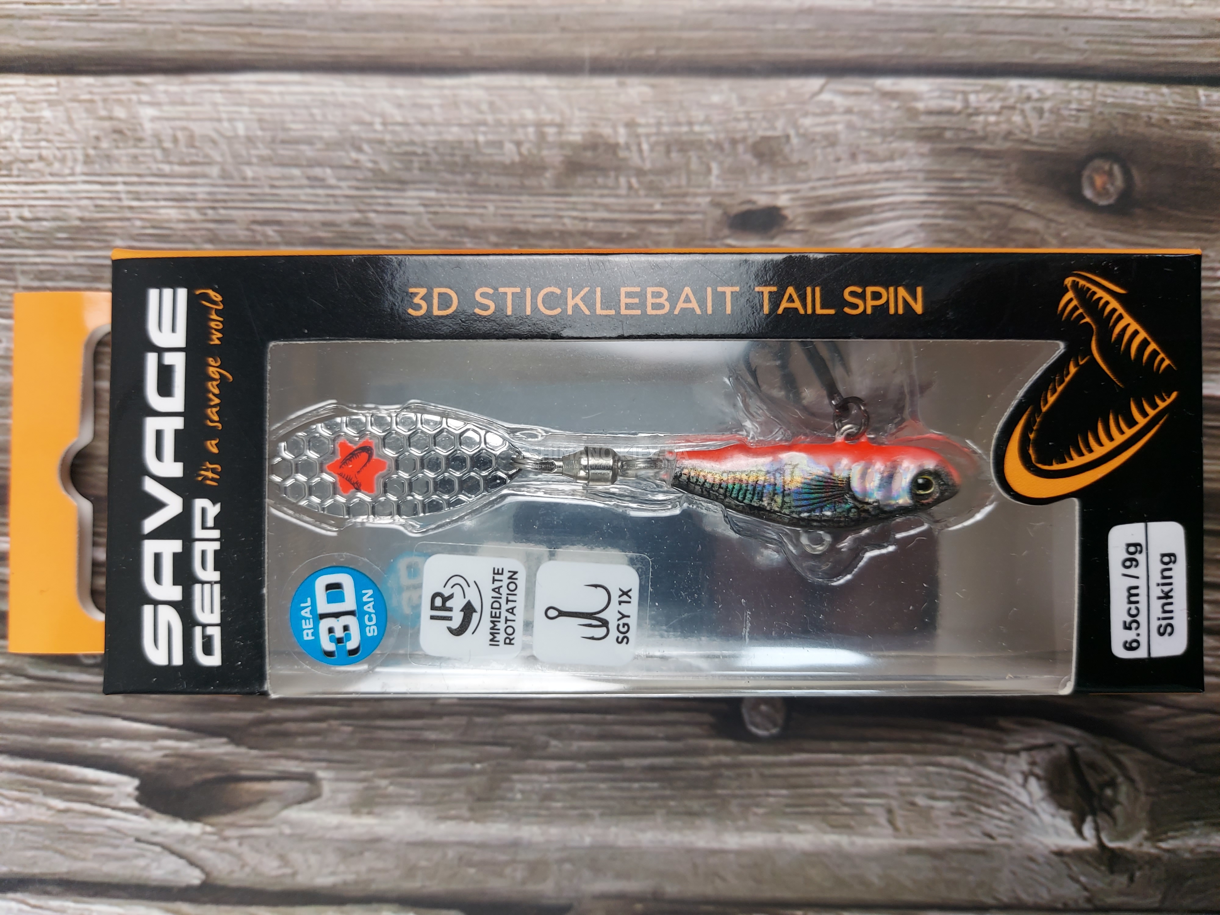Тейл-спіннер Savage Gear 3D Sticklebait Tailspin - приманка яка поєднала особливості воблера і обертальної блешні. Така конструкція дозволяє йому далеко і точно летіти під час закидання, мати стабільну гру і продовжувати привабливо працювати на проводці і при вільному падінні. Тіло виконане у формі натурального малька з точною деталізацією всіх основних особливостей будови риби. Пелюстка швидко запускається в роботу, вона створює потужну вібрацію та відблиски, що приваблюють рибу з великої відстані. Використовуючи тейл-спіннер, рибалок може швидко обловити велику полщу водоймища, при цьому як товщу води, так і придонні шари. Приманка добре піддається джиговій проводці, тому стає привабливою для таких видів риби, як окунь, судак, щука та сом. Тейл-спіннер Savage Gear 3D Sticklebait Tailspin може стати гарною альтернативою силікону, тому що радикально відрізняється від нього своєю грою і це може позитивно позначитися на клюванні хижака.