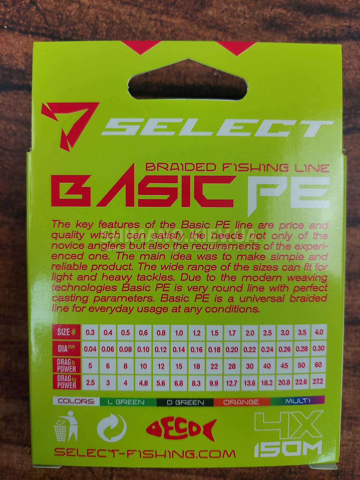 На відміну від багатьох бюджетних аналогів, SELECT Basic PE виробляється без зовнішніх просочень і покриттів, які швидко стираються після кількох інтенсивних рибалок. Тому шнур довго зберігає свою міцність, щільність та стабільні робочі характеристики, навіть після багатьох виходів на воду.