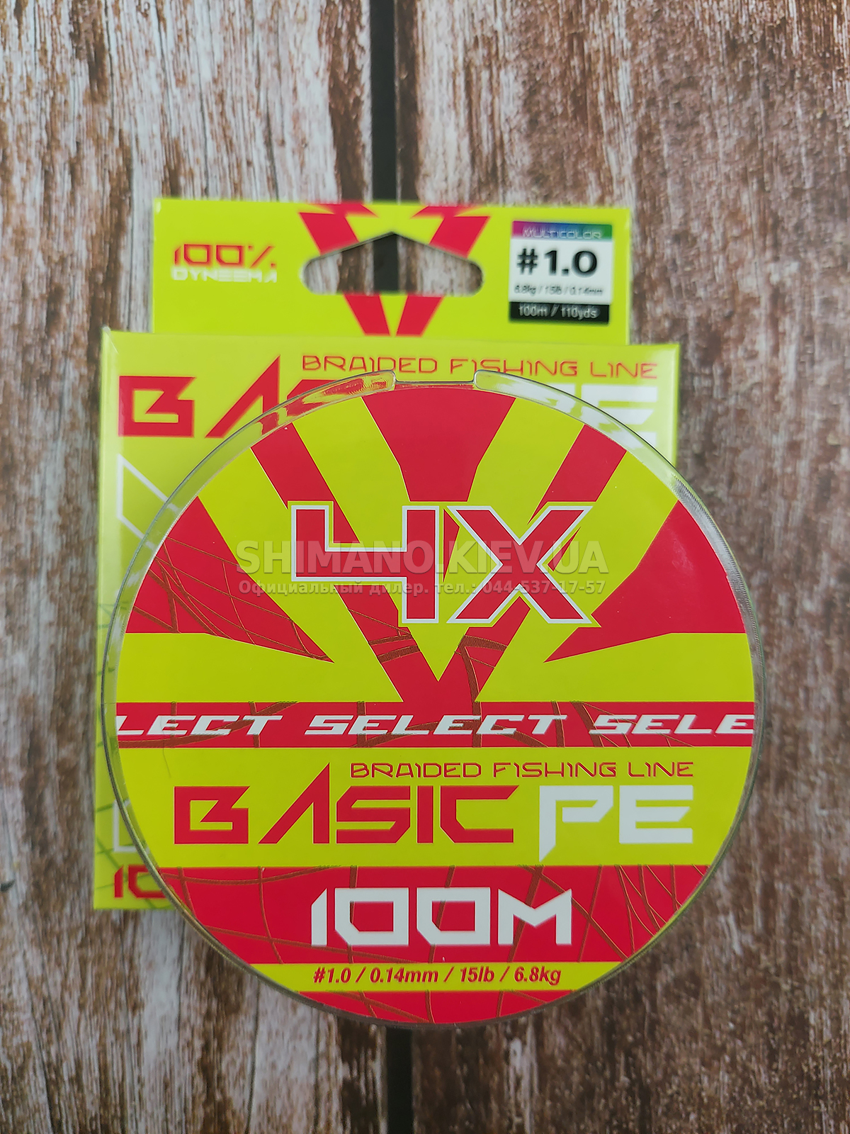 Шнур риболовний Select Basic PE 100m, 0.14mm, 15Lb/6.8kg, колір: різнобарвний