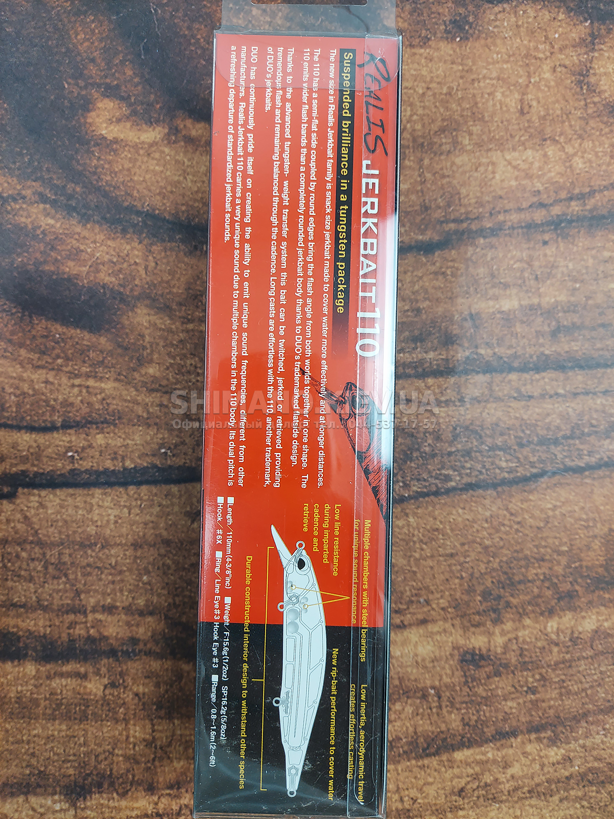 Воблер DUO Realis Jerkbait - ідеальна приманка для лову щуки. Воблер ефективно працює на різних видах і типах проводок, демонструючи високочастотні коливання, які залучають хижаків з досить великих відстаней. Усередині воблера є спеціальні сталеві та вольфрамові кульки, які позитивно впливають на дальність закидання і, видаючи глухе постукування, є додатковим елементом для риби. DUO Realis Jerkbait непогано працює на рівномірній проводці, але всі його "уловисті" властивості розкриваються на твічінгу. Реалістична поведінка приманки у воді, а також натуральні забарвлення ідеально імітують поведінку пораненої рибки – основного об'єкта полювання хижаків.