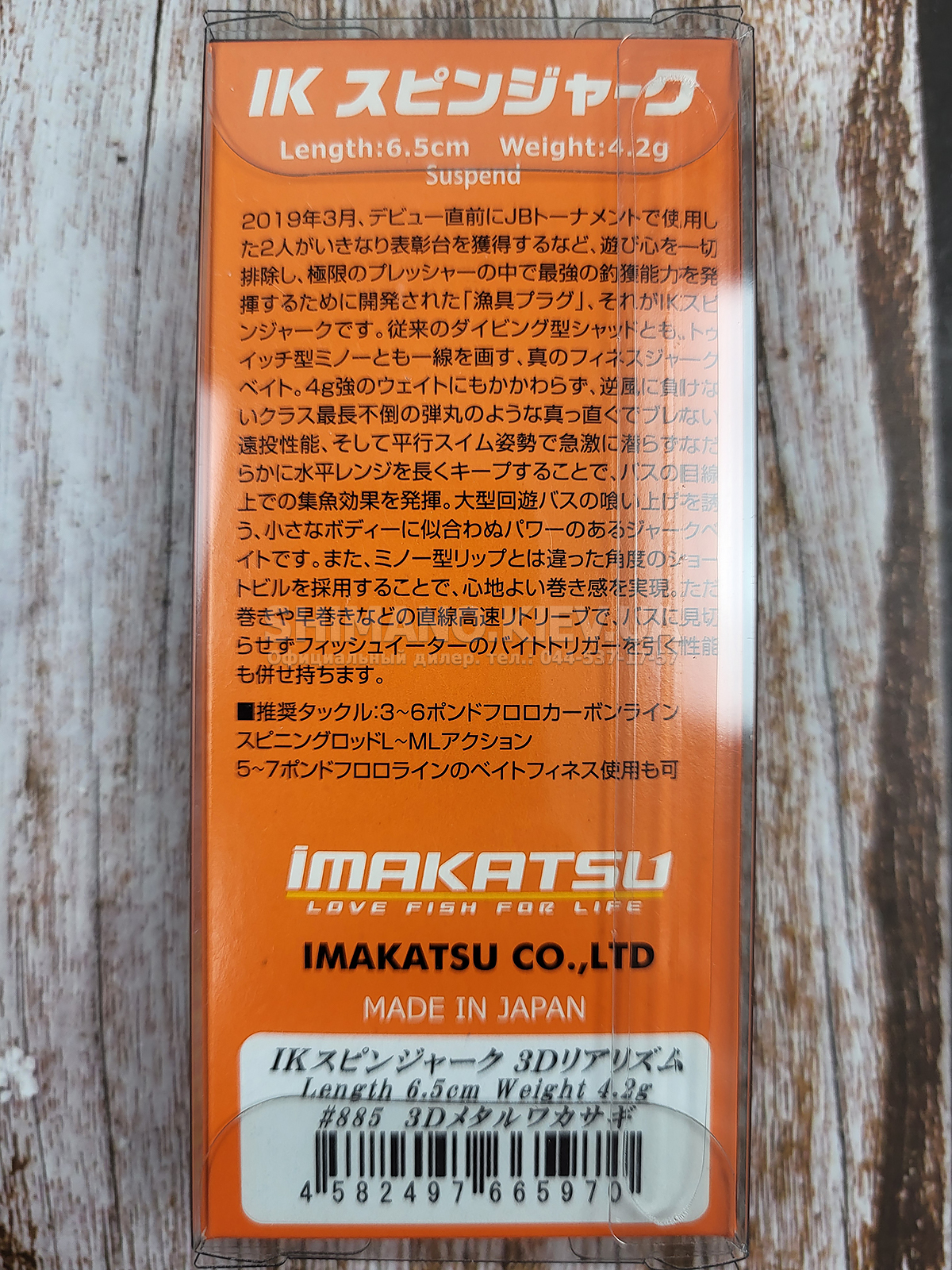 Воблер Imakatsu IK Spin Jerk - невелика за розмірами приманка, проте має високий потенціал з приманювання риби будь-якого розміру. Його довжина 65 мм є оптимальною для лову окуня, жереха і нічного судака, але щука, що пропливає повз нього, не зможе відмовитися від легкої здобичі. Воблер обладнаний магнітною системою далекого закидання, яка в комплексі з аеродинамічним тілом сприяє його гарному польоту навіть у вітряну погоду.Під час рівномірної проводки приманка має чітко виражену гру, а на ривках виразно нишпорить на всі боки. Комбінування різних стилів проведення допоможе швидко обловити перспективну акваторію, з ймовірністю спокусити як активного, так і пасивного хижака.