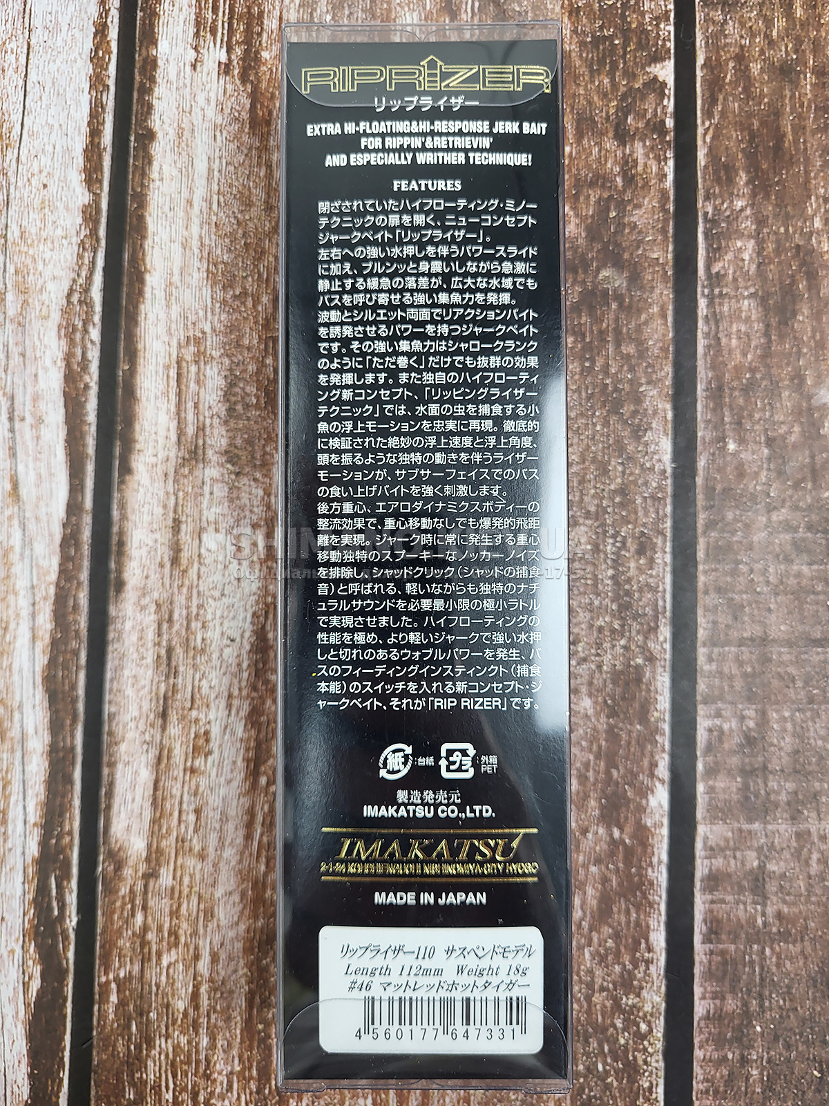 Воблер Imakatsu Riprizer ідеально підходить для твічевого лову в місцях з невеликою глибиною. Основними об'єктами риболовлі, само собою зрозуміло, є щука і окунь. За для судака Riprizer теж хороший, але з огляду на специфіку лову "ікластого" можна здогадатися, що основний час його лову ввечері в місцях його виходу до поверхні на полювання. Конструкція приманки передбачає наявність системи нерухомого вантажу для забезпечення балансу і рухомого - для поліпшення дальності і точності закидання. Лінійка Riprizer наповнена багатим вибором модельних рядів різних розмірів і плавучості. Моделі кожного з модельних рядів мають ряд індивідуальних особливостей, таких як маса габарити і глибина занурення. У кожному з модельних рядів групи Riprizer запропоновано широке розмаїття колірних рішень, які заслужено можна назвати справжнім витвором мистецтва японських майстрів.