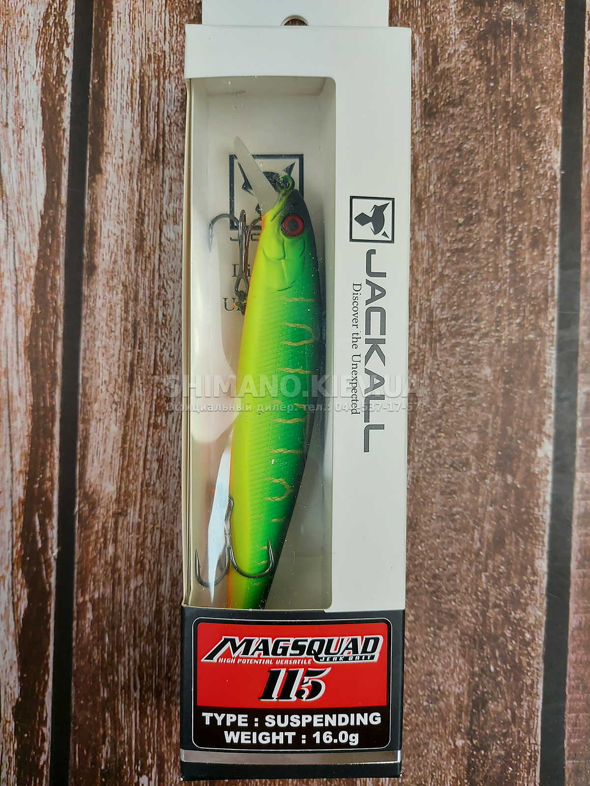 Воблер Jackall Magsquad 115 - дуже галасливий габаритний мінноу з обтічною геометрією тіла. При твітчинговій проводці дуже чутливий до будь-яких рухів спінінга. На різких ривках створює дуже сильні вібрації у воді. поширювані на далекі дистанції. що приваблює рибу з великої відстані. На паузах під час проведення виконує згасаючі рухи з боку в бік провокуючи хижака до атаки.
