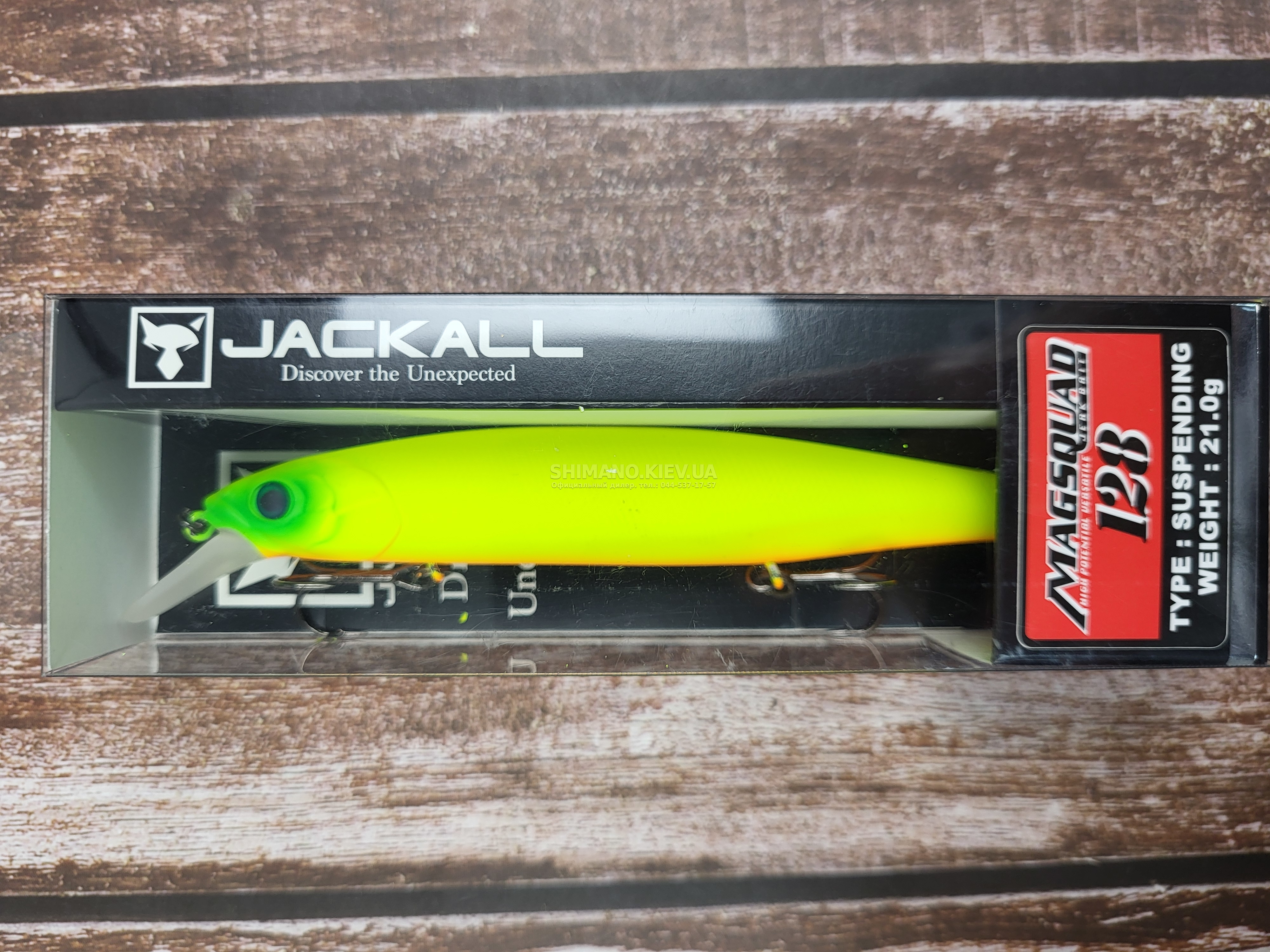 Воблер Jackall Magsquad 128 - дуже галасливий габаритний мінноу з обтічної геометрією тіла. При твітчинговій проводці дуже чутливий до будь-яких рухів спінінга. На різких ривках створює дуже сильні вібрації у воді. поширювані на далекі дистанції. що приваблює рибу з великої відстані. На паузах під час проведення виконує згасаючі рухи з боку в бік провокуючи хижака до атаки.