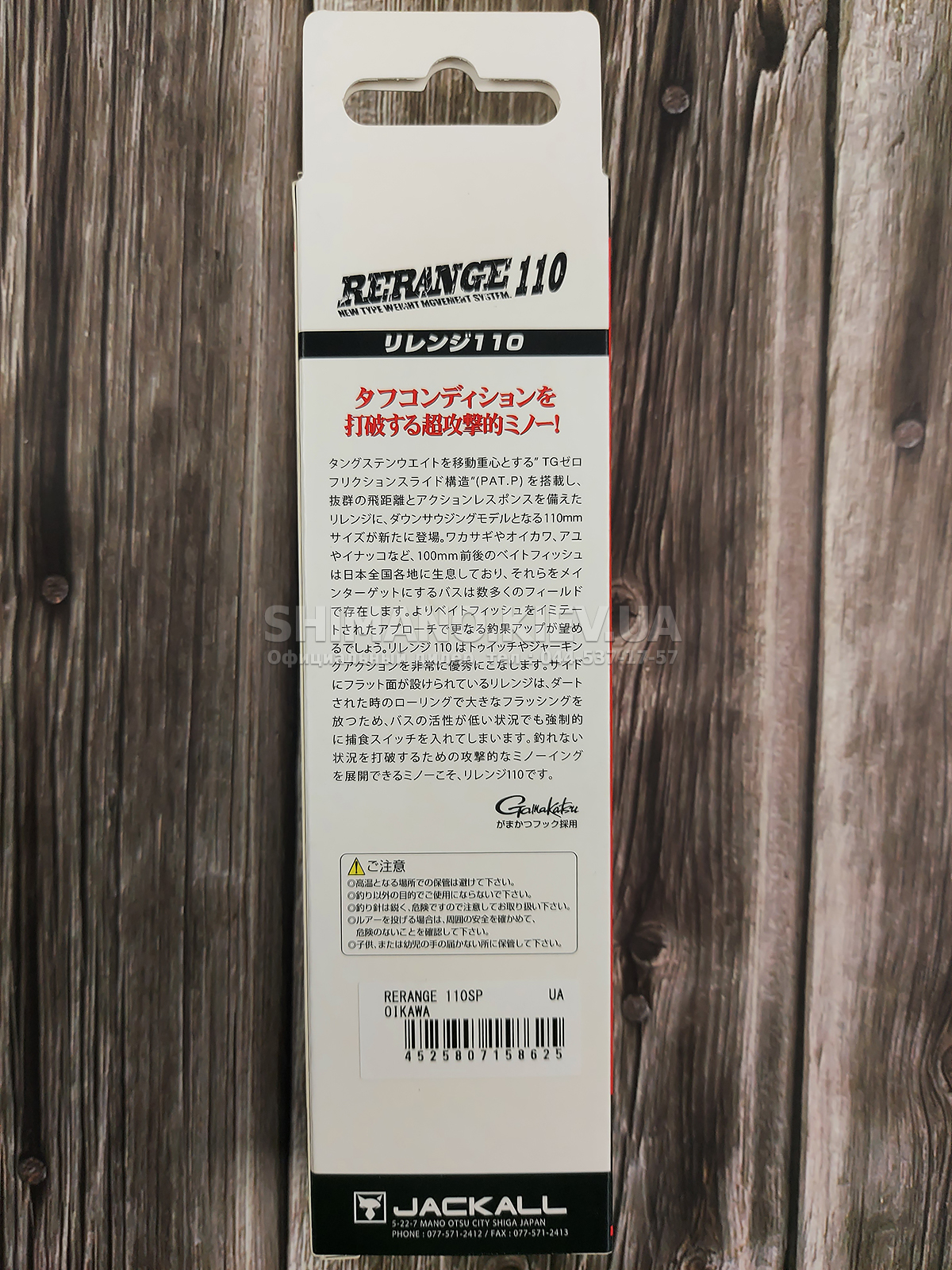 Jackall Rerange 110SP – довгоочікуваний «молодший брат» дуже популярного біг-мінно Rerange 130. Оснащений системою далекого закидання. виконаної у вигляді вольфрамового циліндра. який вільно переміщається у пластиковій капсулі.