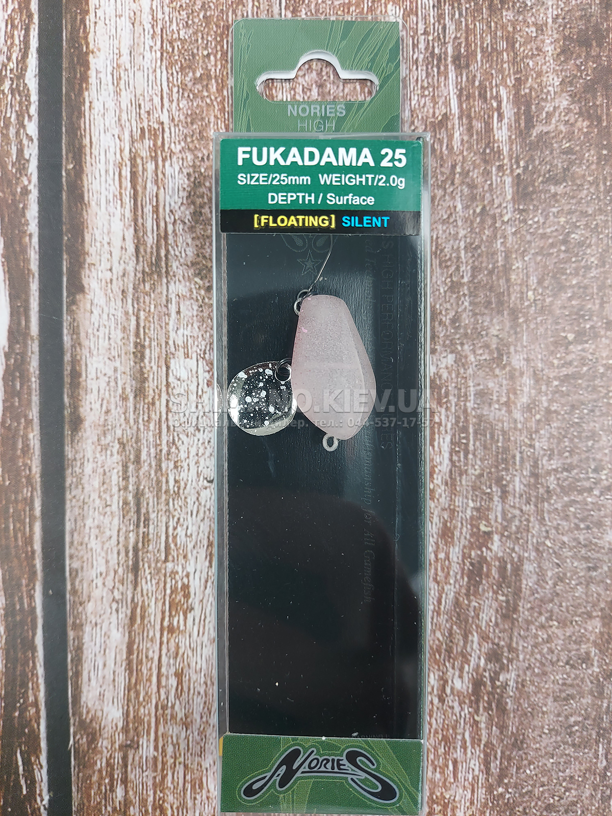Воблер Nories Fukadama – поверхнева приманка дуже незвичайної форми, яка до того ж оснащена металевою пелюсткою. Його поведінка у воді не схожа на звичні для нас аналоги. На рівномірній проводці приманка злегка вихляє боками, на невеликих ривках - перевалюється, але весь час, навіть у стані спокою, пелюстка виконує свої приваблюючі дії, пускаючи відблиски та вібрації. Під час лову на Fukadama дуже корисно періодично робити паузи та підсмикувати його практично на одному місці – жодна форель не встоїть перед такою спокусою. Воблер має досить непогані польотні характеристики, чому сприяє його компактне тіло. Він оснащений одним безбородим гачком, закріпленим на двох заводних кільцях, якого цілком вистачає для здійснення успішного підсікання риби, що клюнула.Воблер Nories Fukadama – це суто форелева спеціалізована приманка для лову у стоячих водоймах, хоча не виключено, що окунь у періоди поверхневої активності виявлятиме до нього інтерес.