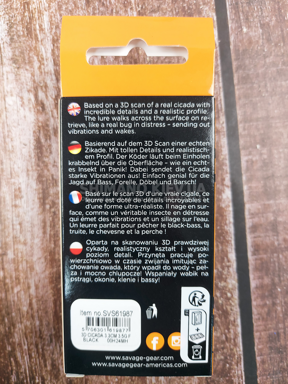 Воблер Savage Gear 3D Cicada - класичний кроулер для лову хижих і всеїдних риб з поверхні. Приманка імітує велику комаху, яке впала в воду і безпорадно борсається на поверхні. Для цього слід підбирати характер проводки дослідним шляхом, виходячи з безлічі умов в конкретних ситуаціях. Як правило, воблер підсмикують короткими ривками, злегка протягують по поверхні, зупиняють на місці з легким тремтінням. На воблер Savage Gear 3D Cicada можуть зазіхнути багато хижих риб в наших широтах, найбільш вірогідні клювання головня, окуня, щуки і жереха, не виключені атаки великого в’ язя.