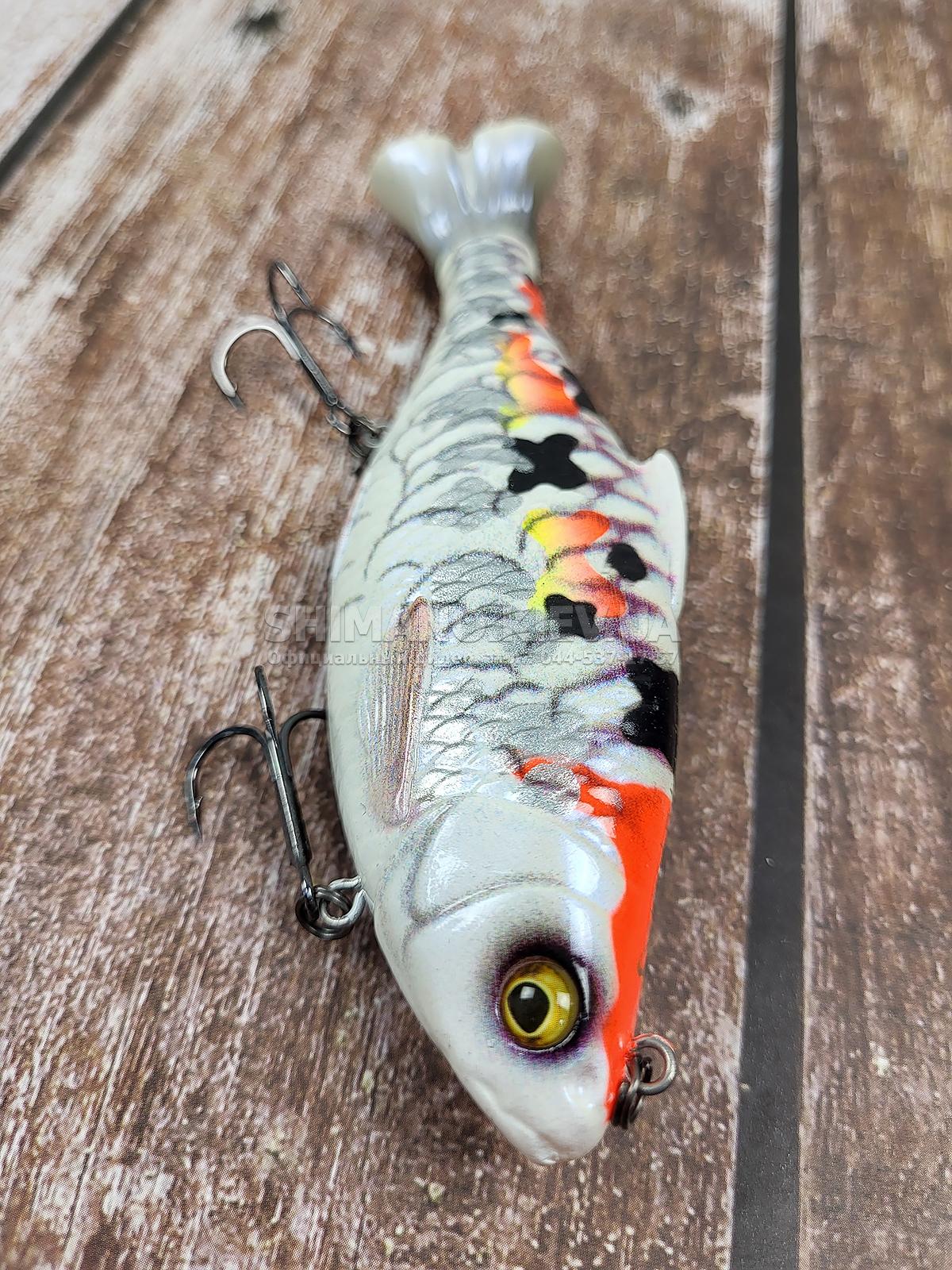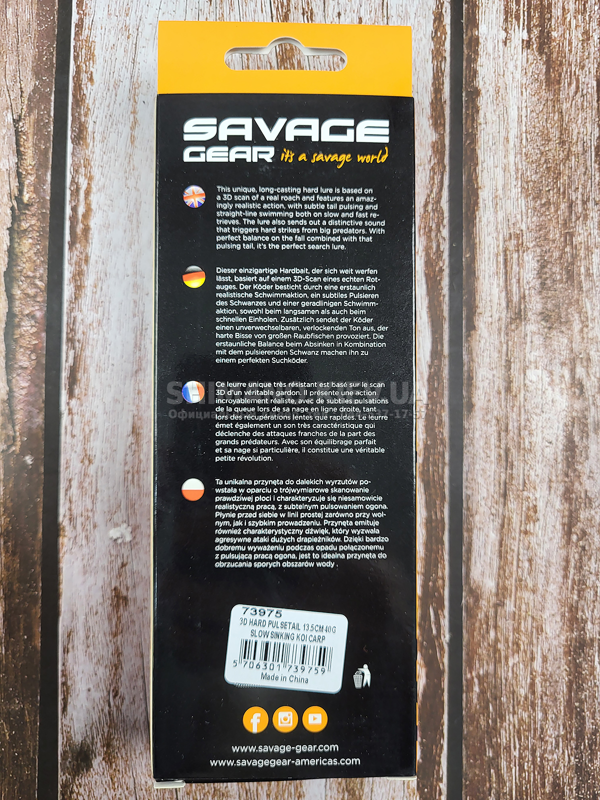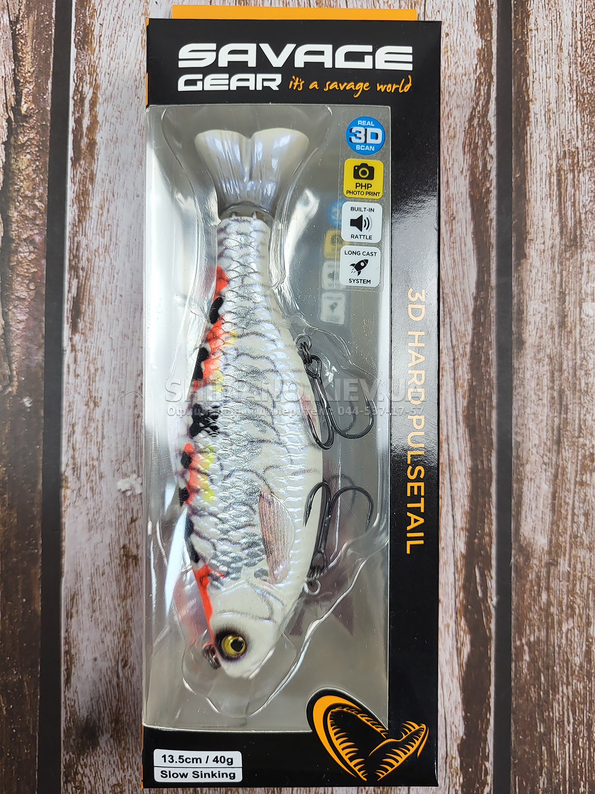 Воблер Savage Gear 3D Hard Pulsetail Roach – унікальна приманка, виконана у вигляді великого свімбейту, але по грі нагадує силіконовий віброхвіст. Хвостова частина має шарнірне з'єднання, яке під час проводки створює вібрації, що приваблюють рибу, та розгойдує воблер в цілому. А якщо додати ще дуже реалістичний вигляд, то створюється неперевершений ефект натуральної здобичі для хижака. Приманка виконана шляхом 3D сканування справжньої плітки, тому всі обводи тіла, плавці та очі максимально нагадують цю популярну в наших водоймах рибу. Ідеальний баланс воблера зробив його повільно тонучим, що дозволяє рибалці ретельно обловлювати всі ділянки водойми, комбінуючи рівномірну проводку з паузами.
