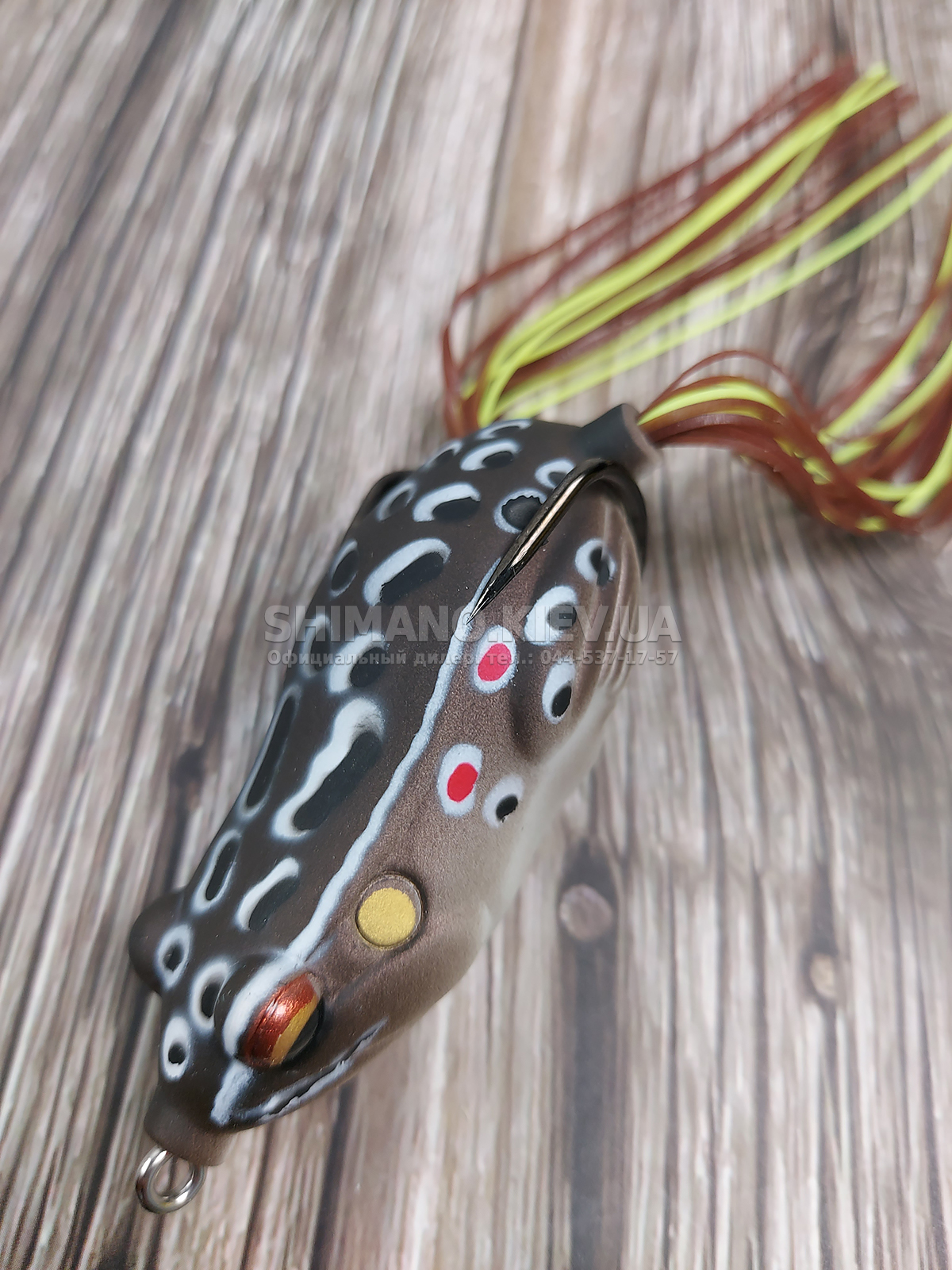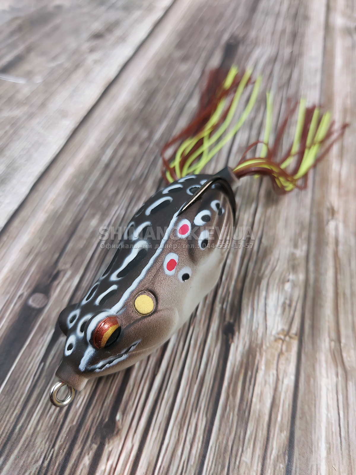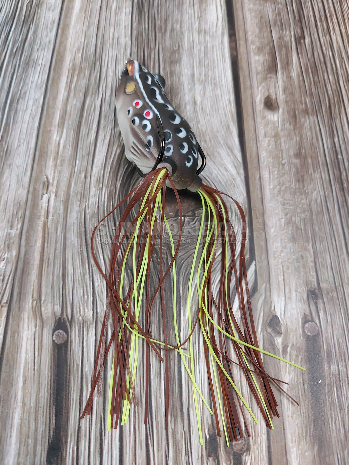Savage Gear 3D Walk Frog - оригінальний волкер імітує плаваючу по поверхні води жабу. Тіло приманки виконано з м'якого ПВХ, в нього вставлений подвійний гачок, жала якого спрямовані верх і знаходяться практично на одному рівні з поверхнею воблера. Така конструкція дозволяє проводити приманку на ділянках водойми, які сильно закоряжені або заповнені водною рослинністю. При хватці риба легко продавлює м'який матеріал і засікається на гачок. Під час ривкової проводки, воблер «нишпорить» з боку в бік по поверхні, залучаючи своїми рухами рибу. Пучки гнучких силіконових ниток імітують рухомі задні лапи земноводного. У комплект входить додатковий одинарний гачок, який можна додати для кращої реалізації клювань. Savage Gear 3D Walk Frog добре зарекомендував себе при ловлі щуки і баса.- м'який ПВХ;