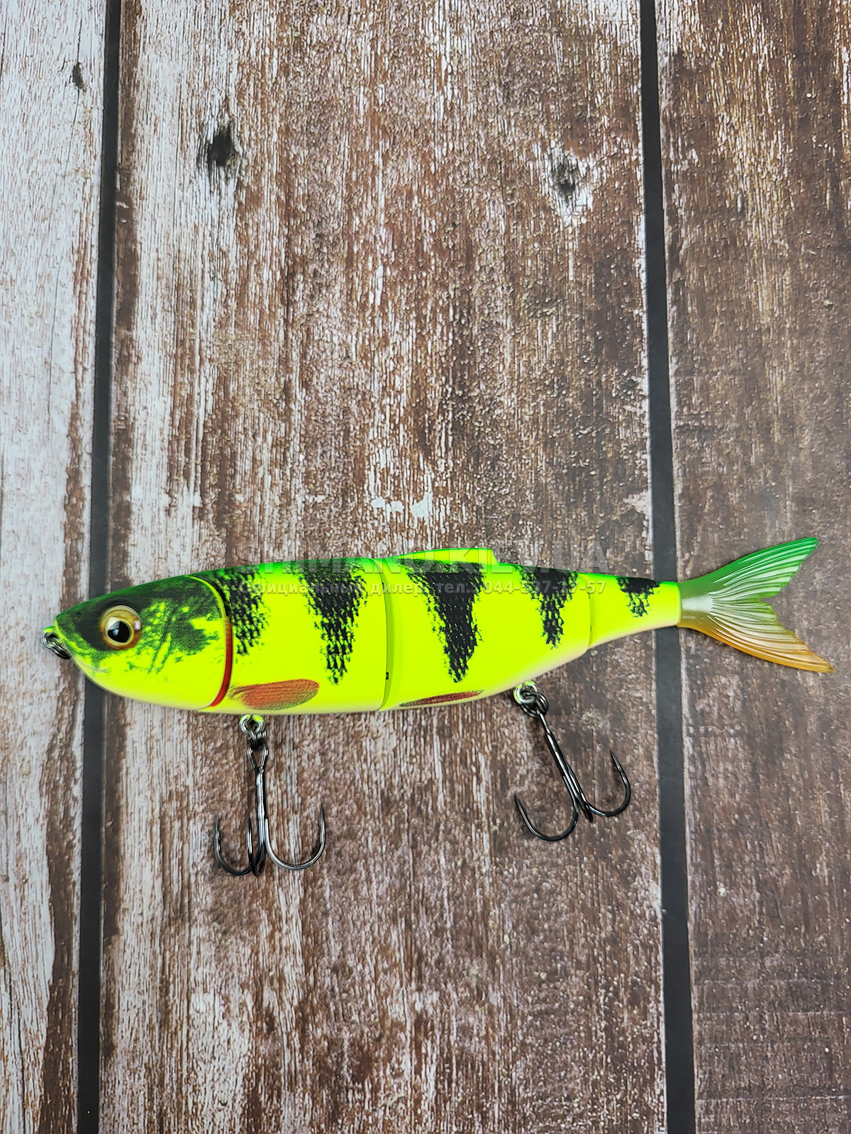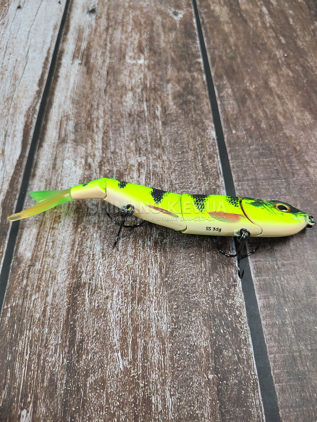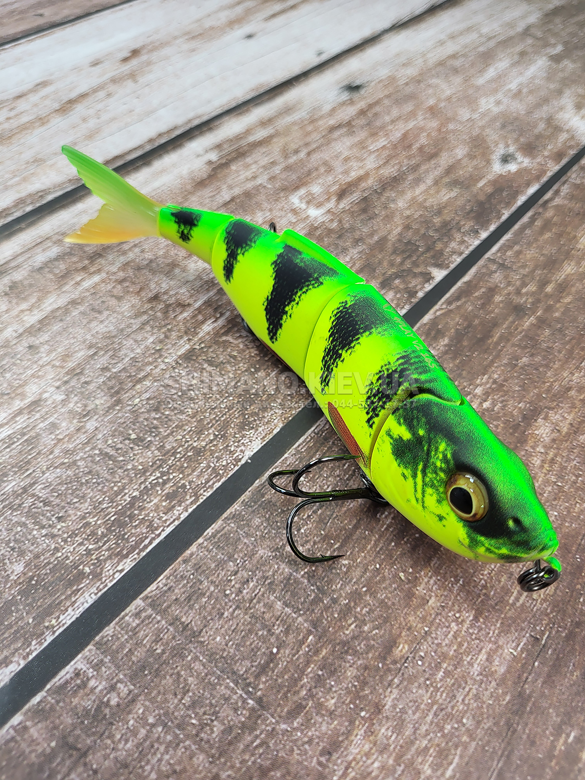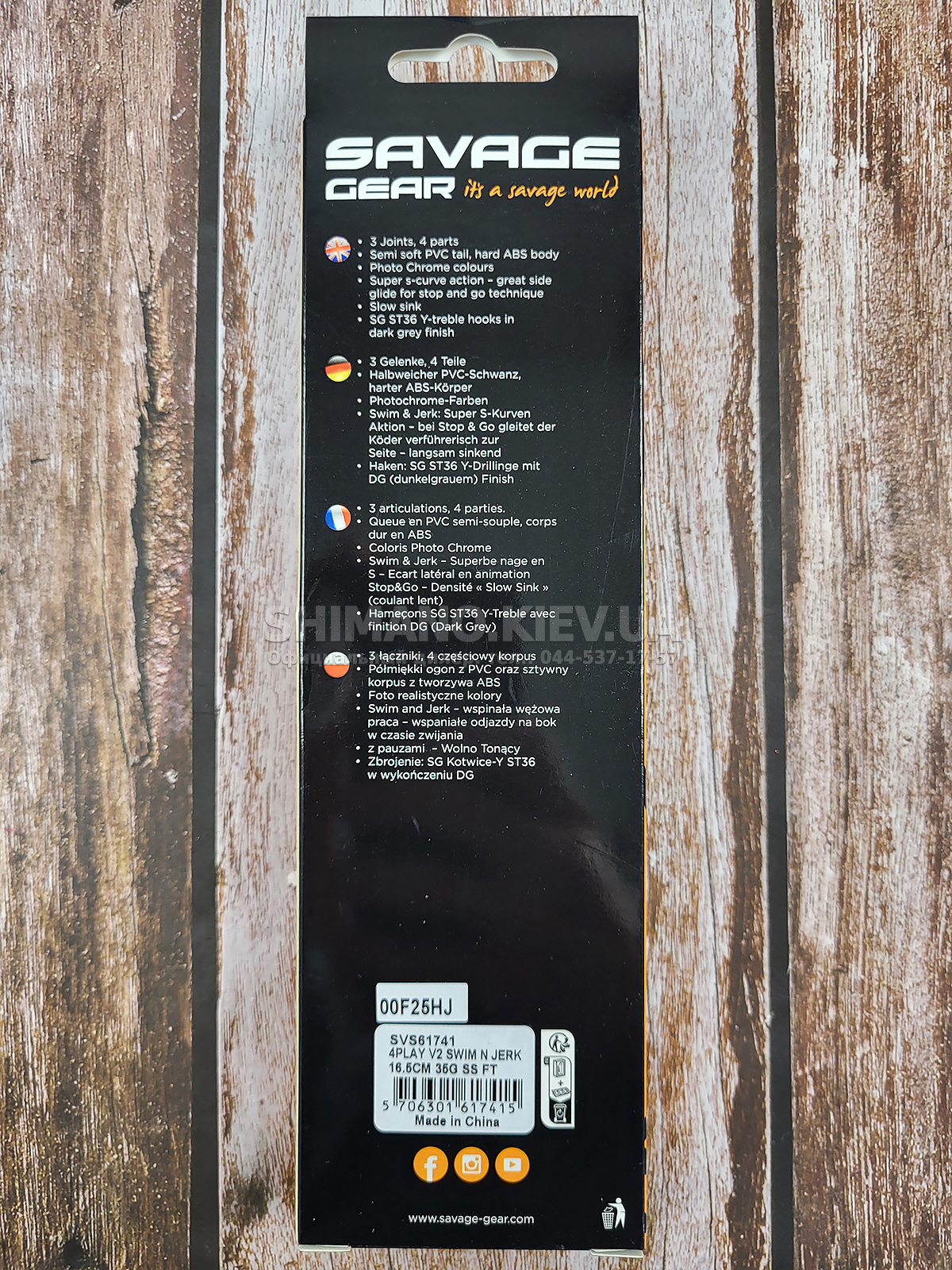 V2 Swim & Jerk - це оновлена версія вже перевіреного часом безлопатевого свімбейта від Savage Gear. Воблер випускається в трьох розмірах - 13,5, 16,5 и 20 сантиметрів, і розподілом ваги від 18, 32, 65 грамів відповідно. Додаткову реалістичність V2 Swim & Jerk отримала завдяки використанню фірмового забарвлення. Виконана за допомогою технології 3D сканування прототипу. Навіть найважчою версією 3D 4Play V2 Swim & Jerk легко управляти, вона безлопатева і, як наслідок, абсолютно не створює опору. У проводці свімбейт абсолютно невибагливий - V2 Swim & Jerk відмінно реагує на різноманітні ривки і навіть плавні. Практично при будь-яких маніпуляціях цей невеликий джерк грає стабільно і дуже привабливо. При правильній проводці трискладового воблера малює плавну «змію», а на паузі повільно тоне, злегка похитуючи своїми високими плоскими боками щодо поздовжньої осі. Приманка дуже універсальна по горизонту проводки - її при необхідності можна провести як під самою поверхнею, так і біля дна навіть на великих глибинах. Найдрібніший розмір цього свімбейта краще використовувати не тільки для ловлі щуки і судака, а й в спробах спокусити і великих окунів, також для полювання на трофейну щуку.