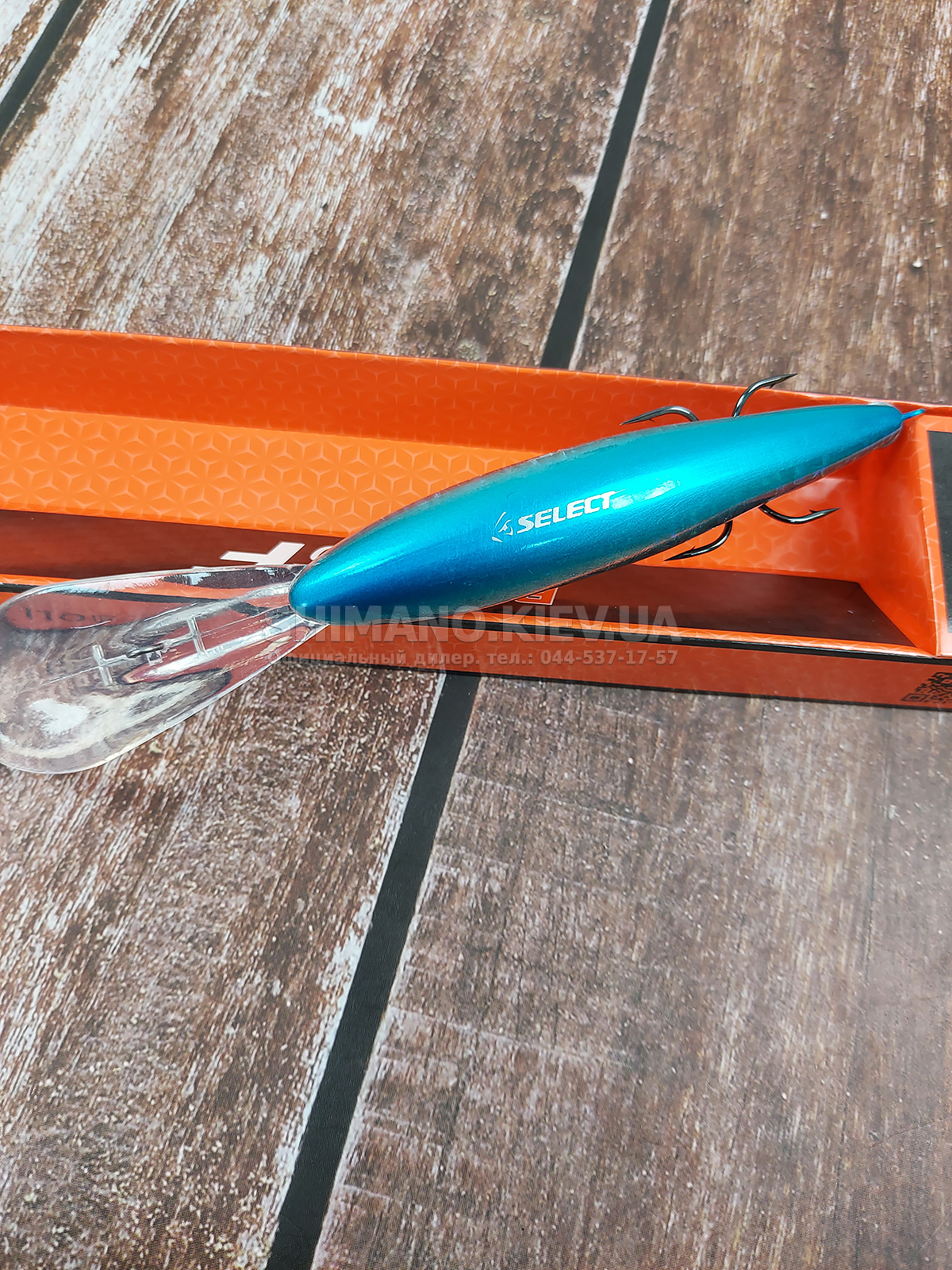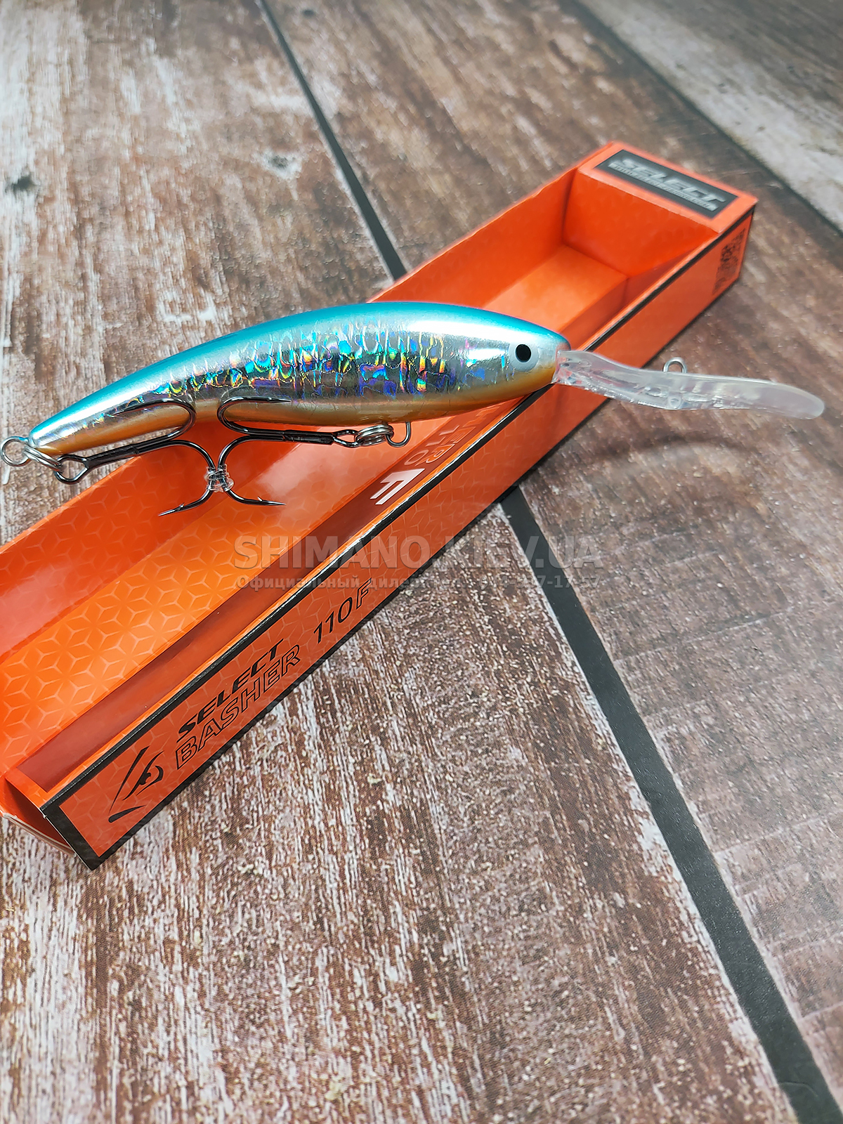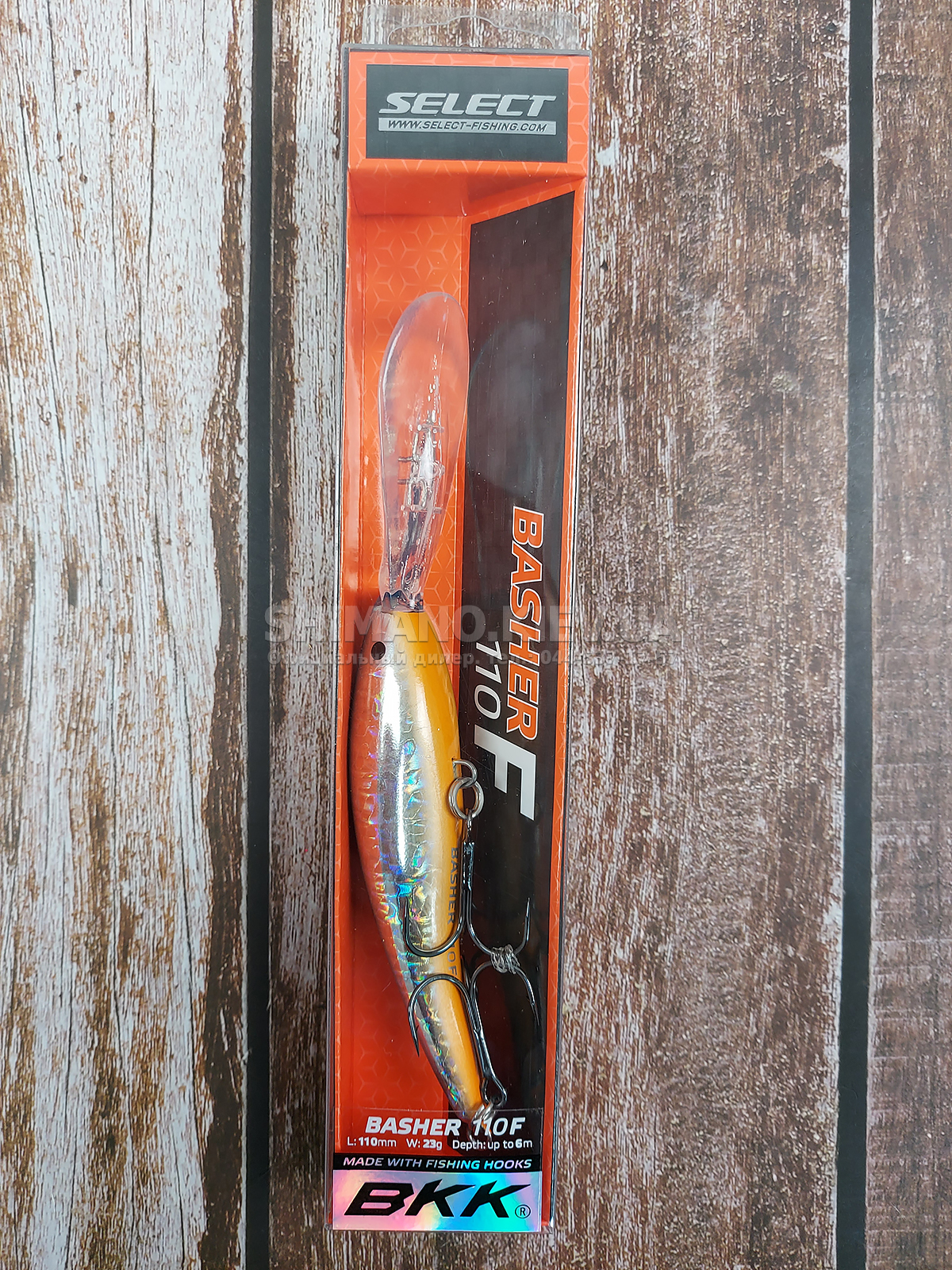Воблер Select Basher - глибоководна тролінгова приманка для лову щуки, судака та сома. Хоча, він має хороші аеродинамічні характеристики, тому підійде для облову глибоководних ділянок в закид, під час риболовлі з човна. Даний воблер має розмашисту гру з поперечними коливаннями вздовж своєї осі, тому створює вібрації, що приваблюють рибу з великої відстані і спокушають її на атаку. Шумова камера всередині приманки полегшує її пошук хижаком на великій глибині та в умовах поганої видимості. Гострі та міцні гачки BKK добре засікають трофей і надійно утримують його навіть під час тривалого виважування з великої відстані.