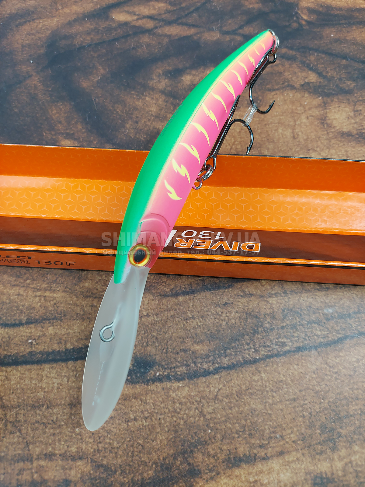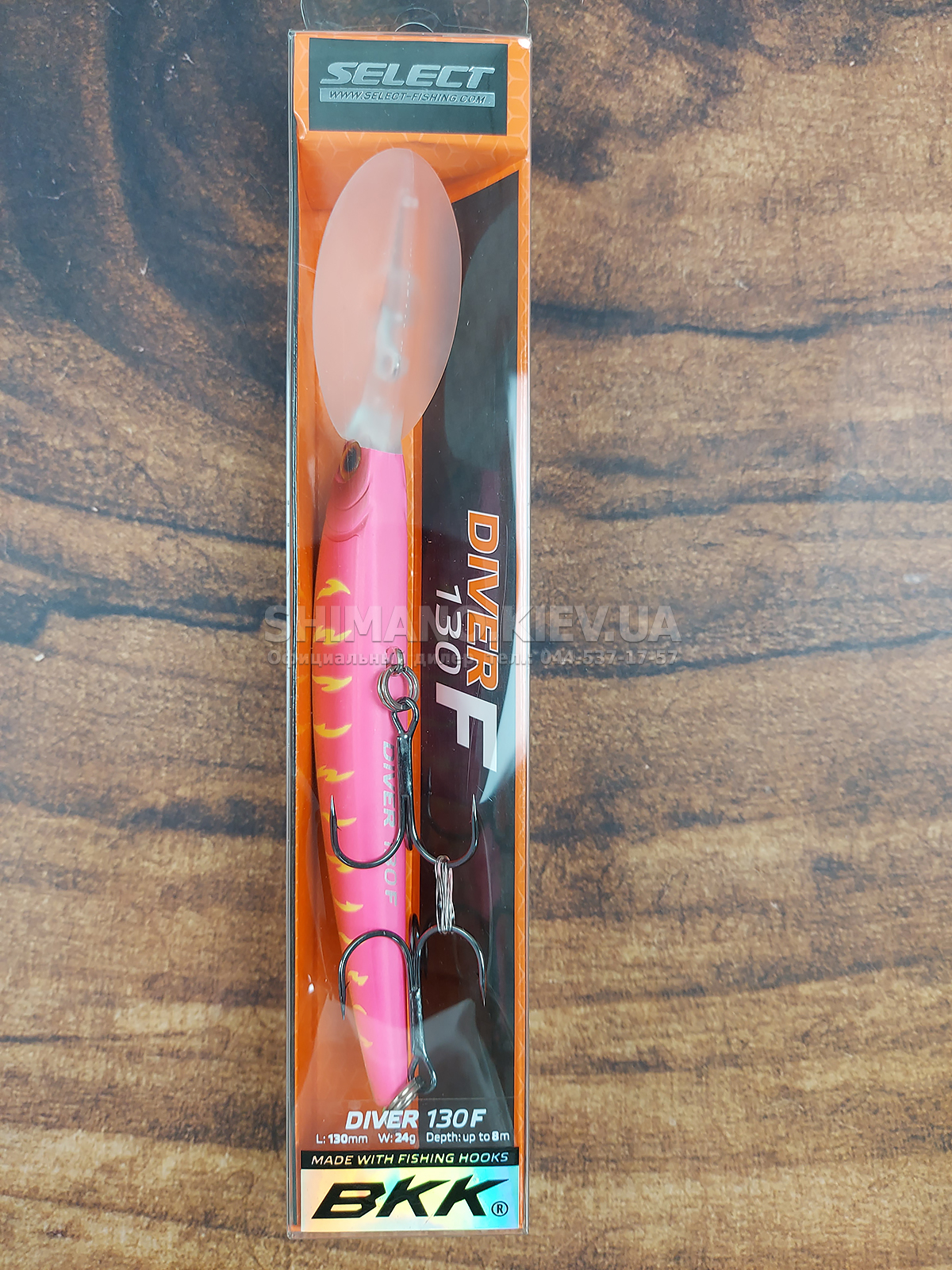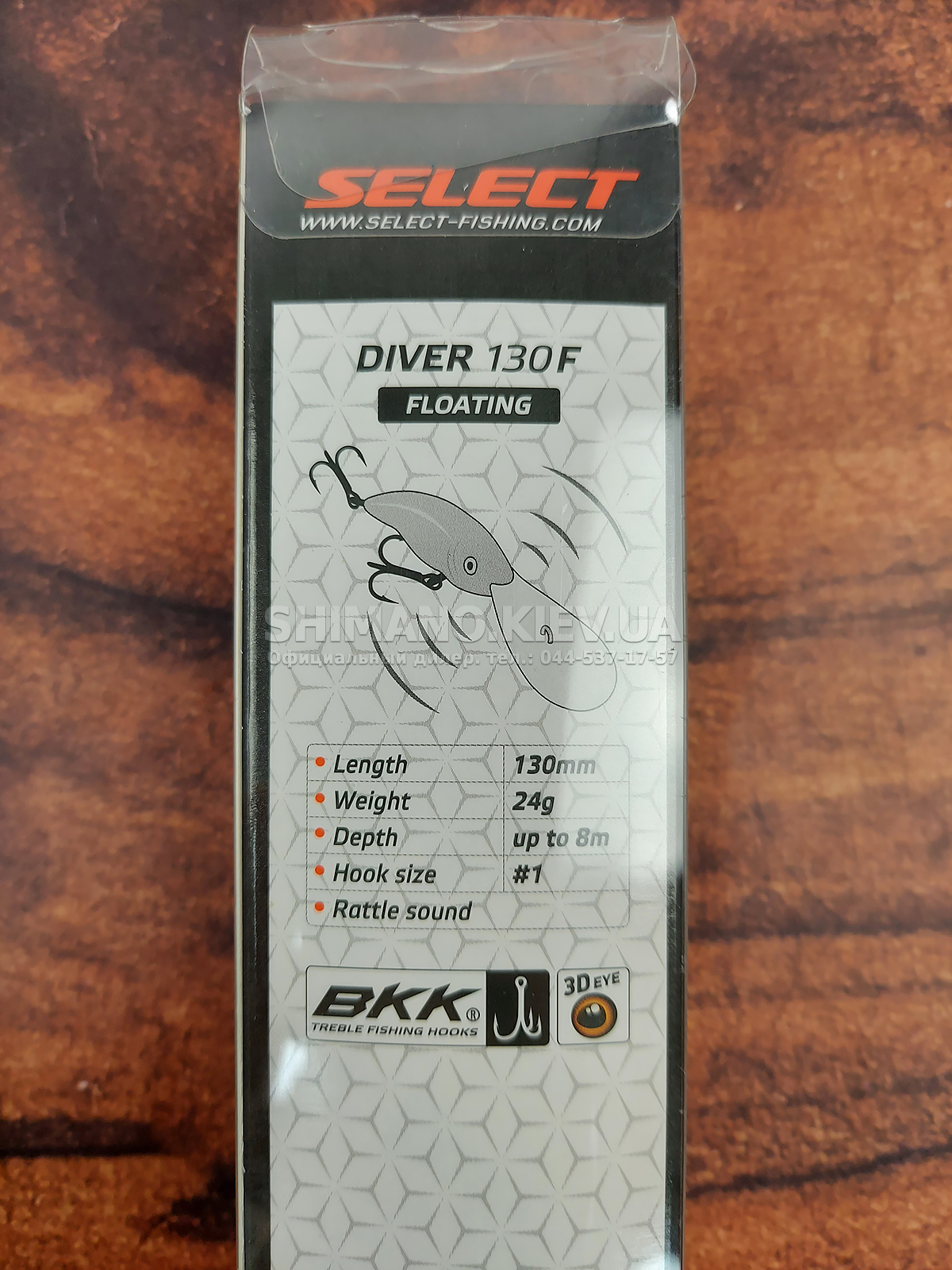 Воблер Select Diver - дуже популярна приманка серед рибалок, які віддають перевагу лову хижака тролінгом з човна. Він має пристойне заглиблення, чому сприяє довга і широка лопатка, тому ідеально підійде для облову значних глибин, де мешкає велика риба. Найкращою для цього воблера є рівномірна проводка, на якій він здійснює плавні коливання в товщі води, хоча додавання несильних потяжок або періодичні торкання дна провокують додатково хижака на атаку. Усередині приманка оснащена шумовою камерою, що дозволяє рибі швидше виявити її на великій глибині. Якісні гачки BKK, що володіють гостротою та міцністю, гарантують хорошу реалізацію клювань і зводять до мінімуму кількість сходів трофеїв.