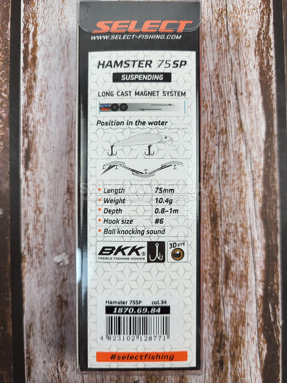 Воблер Select Hamster - своєрідний "пузатий" міноу з активною грою та простою анімацією. Він добре твічиться на ривках різної інтенсивності, а на паузах привабливо зависає в товщі води, спокушаючи хижака на клювання. Робочий горизонт воблера обмежується глибинами до 1 метра, тому його ефективно використовувати на мілководді, вздовж водної рослинності або біля неглибоких кіс.