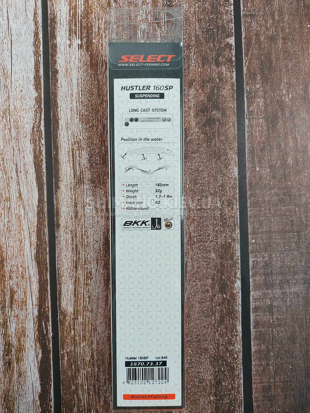 Воблер Select Hustler - велика приманка для лову щуки. Але, незважаючи на свої розміри, на нього впевнено клює як крупна, так і невелика риба масою до 1 кг. Воблер має специфічну плоску форму, що наділяє його унікальною грою. На простій рівномірній проводці він активно перевалюється з боку на бік, але найбільшу привабливість має під час твічингу, йдучи в сторони та зависаючи на одному місці з похитуваннями боками. Для підвищення польотних характеристик воблер оснащений системою далекого закидання, яка, не дивлячись на парусність приманки, стабілізує його в повітрі і дозволяє летіти в певне місце.Воблер Select Hustler оснащений якісними трійниками BKK, що мають достатню потужність для виважування великої риби.