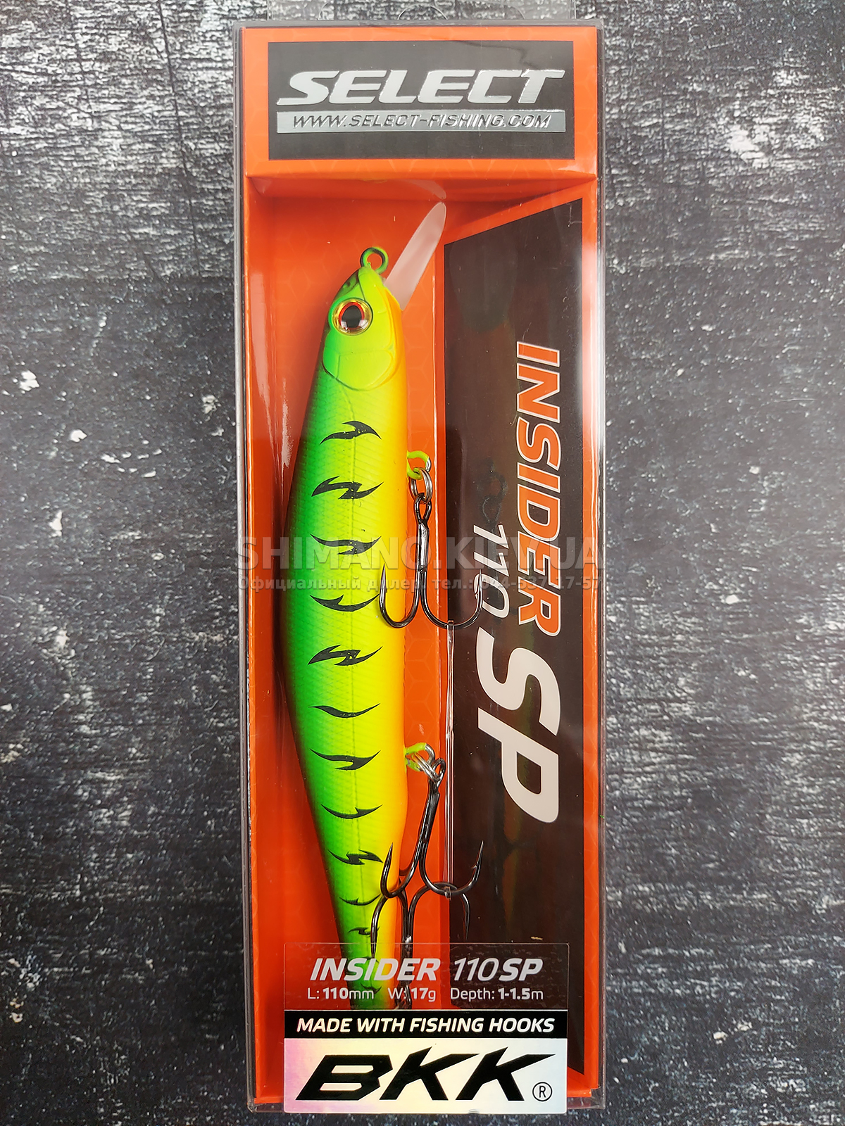 Воблер Select Insider - універсальна приманка прогонистої форми мінноу, ідеально пристосована для ривкової проводки. Під час твічинга він хаотично нишпорить з боку в бік, іноді розвертаючись на 180°, чим привертає увагу хижака з великої відстані. Воблер, завдяки нейтральній плавучості, дозволяє довго залишати його в товщі води, щоб спровокувати на атаку навіть саму нерішучу рибу. Select Insider оснащений системою далекого закидання - циліндричний вантаж під час закидання переміщується по осі в хвостову частину, а під час початку проводки магніт повертає вантаж в робоче положення. Таким чином, приманка далеко летить під час закидання і стабільно поводиться у воді.Воблер Select Insider застосовується, в основному, для лову щуки, судака та окуня вздовж берегової лінії або на мілководних косах.