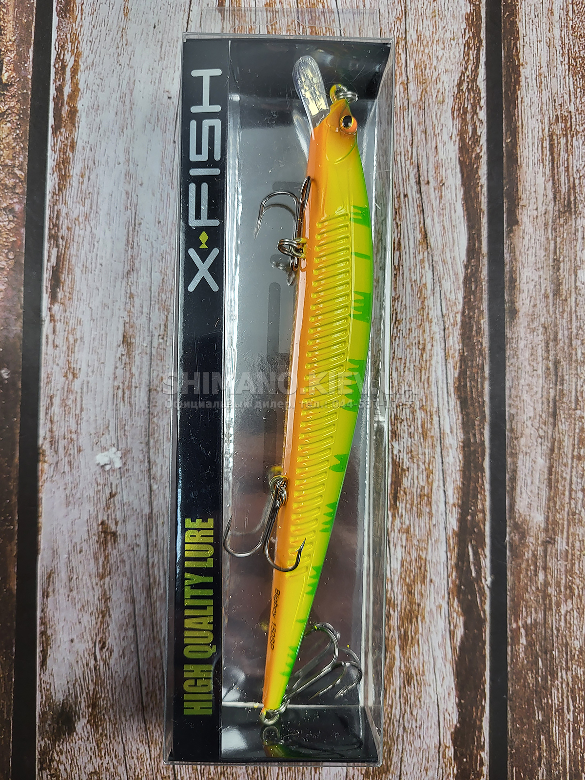 X-Fish Bigboy – це великий поверхневий воблер типу міноу, який здатний підняти з глибини найпасивнішу трофейну щуку! Під час рівномірного проведення, Bigboy активно виляє хвостом одночасно хитаючись в різні боки, а на потужних ривках при твічінгу – широко рискає в сторони. Попри значний розмір цей суспендер вирізняється малим лобовим опором - тонке тіло та компактна лопать створюють мінімальний опір під час твічінгового проведення. Воблер X-Fish Bigboy має чудові льотні властивості, що дозволяє з легкістю закидати його на значну відстань та у важкодоступні місця водойми. Модельний ряд має широку палітру кольорів, що дозволяє використовувати даний воблер для різних умов лову.
