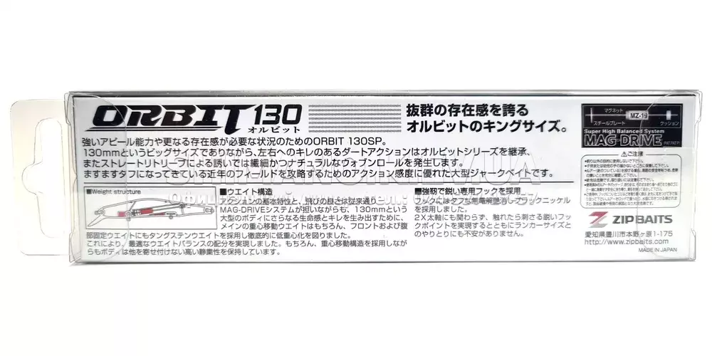 130-я серія Zip Baits Orbit на сьогоднішній день втілила в собі всі кращі якості менших побратимів, щоб по праву стати однією з найоптимальніших приманок в своєму розмірі для лову насамперед трофейної щуки на глибинах до 2 метрів.