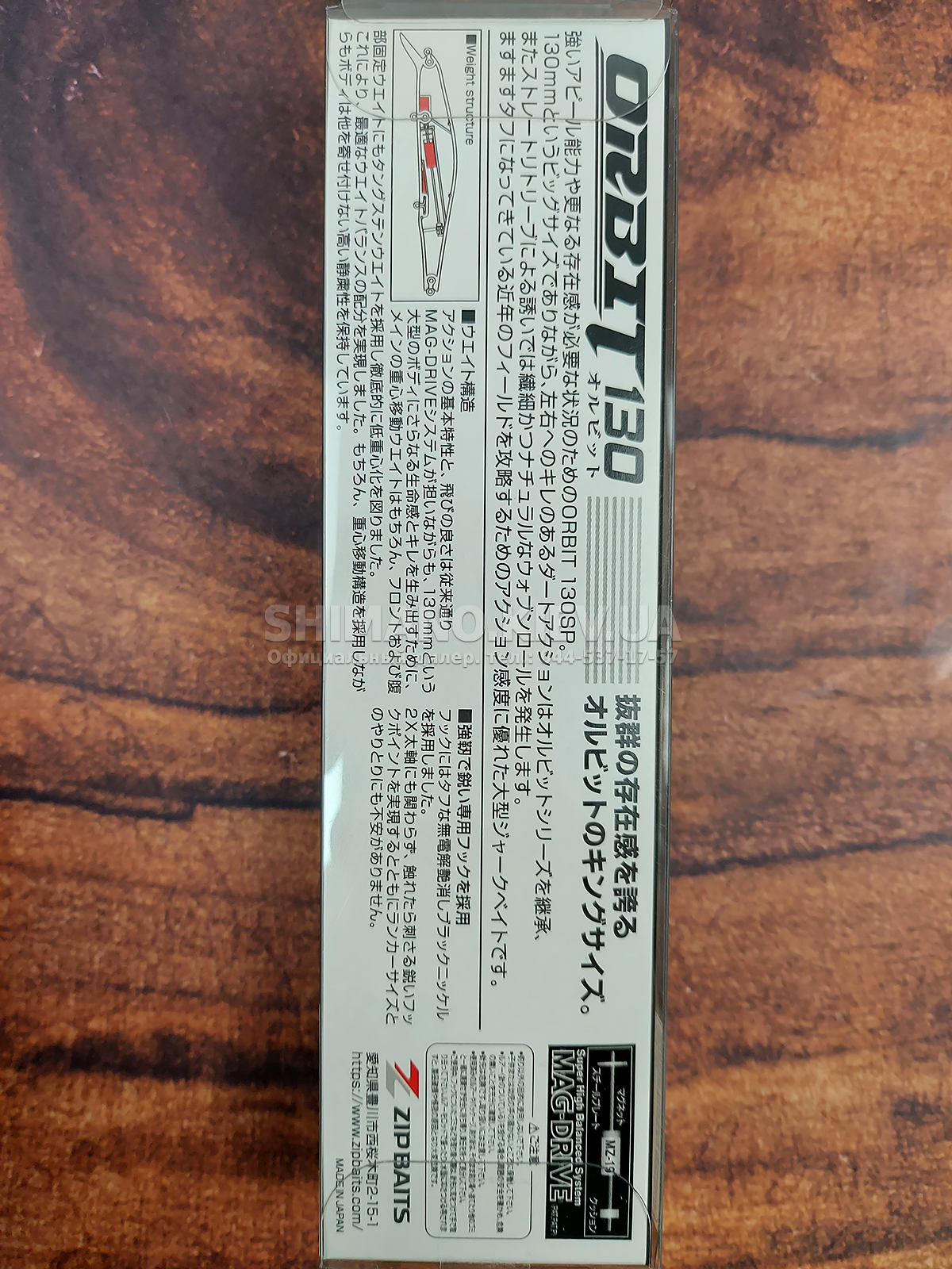 Воблер Zip Baits Orbit – велика лінійка популярних міноу, назва яких стала вельми відомою серед досвідчених рибалок. Творці цього воблера «заточили» його під лов басу. В наших умовах Orbit можна сміливо віднести до одного з найефективніших для лову щуки та великого окуня. Багато шанувальників твітчингової техніки при пошуку щуки в осінній період основний упор роблять на ту чи іншу модифікацію Orbit. Ряд спеціальних особливостей конструкції, таких як магнітна система Mag Drive Super та High Balanced System з вольфрамовим вантажем MZ-19 надає приманкам далекобійності та неповторної гри, яка так подобається рибі. Всі моделі Zip baits Orbit є суспендерами та мають маркування SP, що дозволяє їм зависати в перспективних місцях, не спливаючи та не занурюючись. Випускається у чотирьох розмірах 6.5 см, 8 см, 9 см та 11 см.