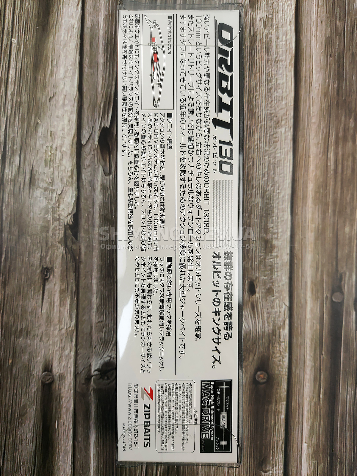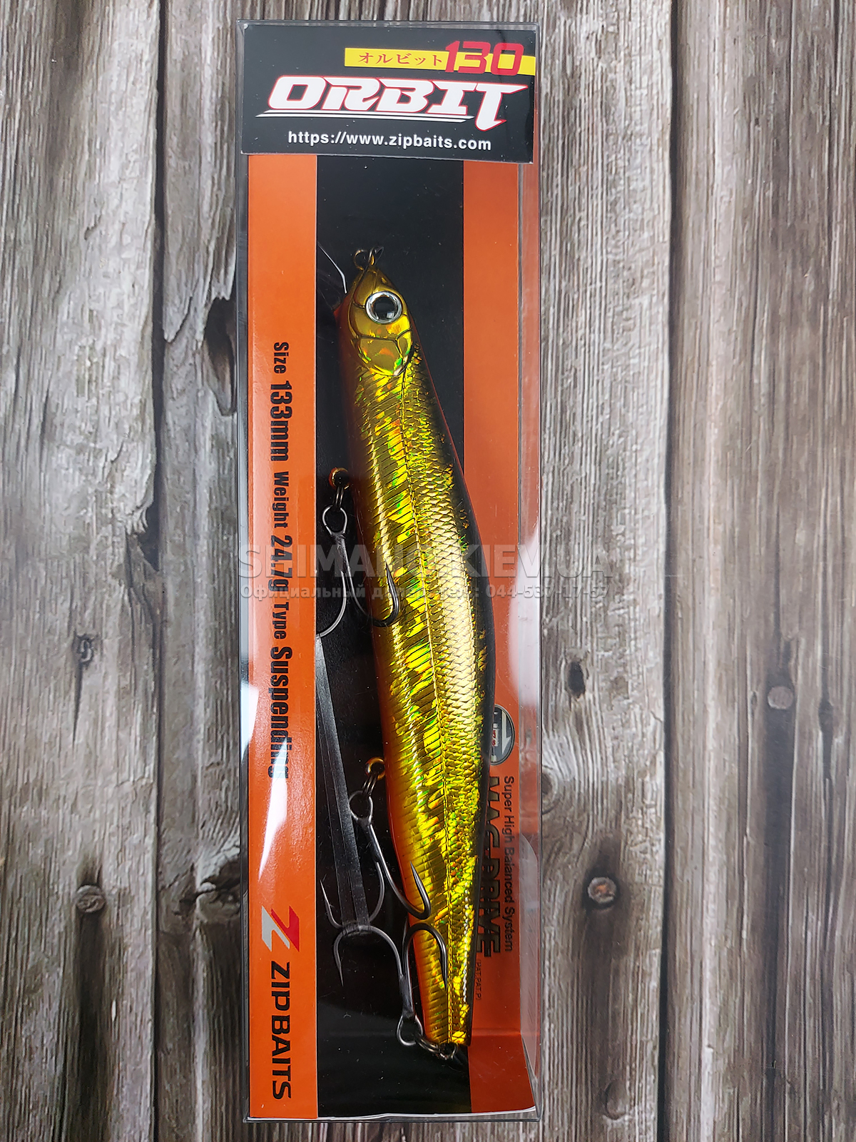 Воблер Zip Baits Orbit – велика лінійка популярних міноу, назва яких стала вельми відомою серед досвідчених рибалок. Творці цього воблера «заточили» його під лов басу. В наших умовах Orbit можна сміливо віднести до одного з найефективніших для лову щуки та великого окуня. Багато шанувальників твітчингової техніки при пошуку щуки в осінній період основний упор роблять на ту чи іншу модифікацію Orbit. Ряд спеціальних особливостей конструкції, таких як магнітна система Mag Drive Super та High Balanced System з вольфрамовим вантажем MZ-19 надає приманкам далекобійності та неповторної гри, яка так подобається рибі. Всі моделі Zip baits Orbit є суспендерами та мають маркування SP, що дозволяє їм зависати в перспективних місцях, не спливаючи та не занурюючись. Випускається у чотирьох розмірах 6.5 см, 8 см, 9 см та 11 см.